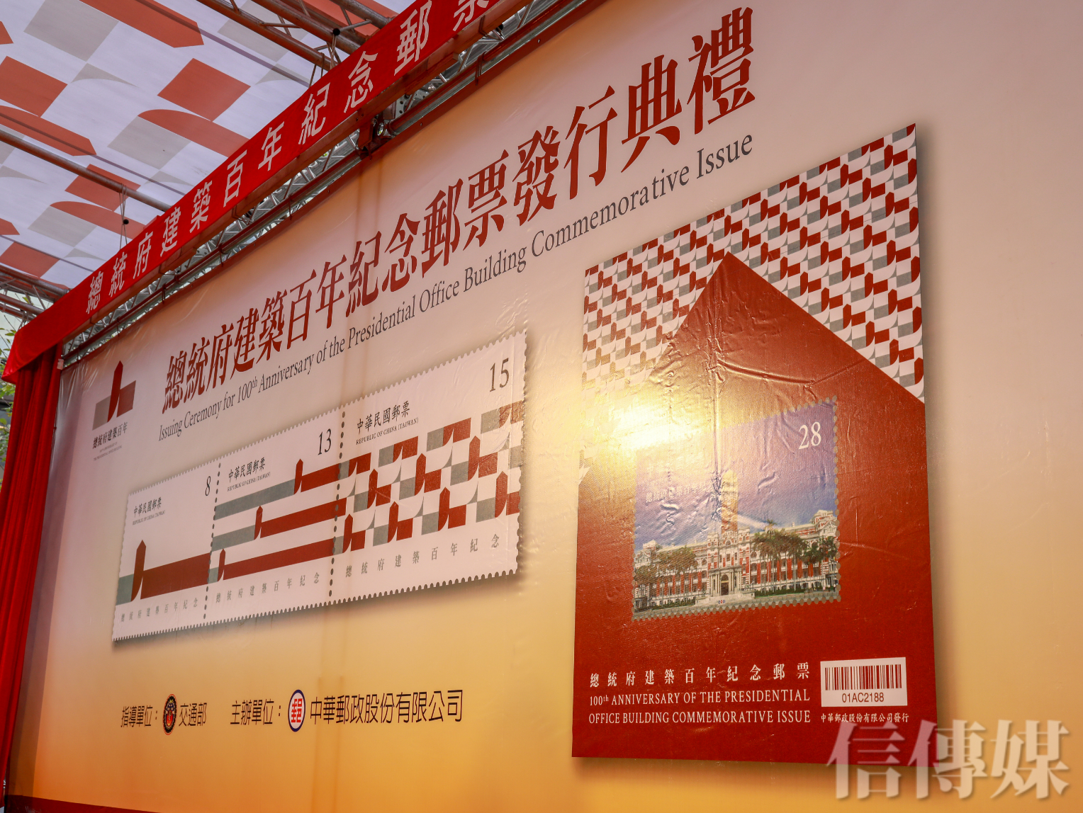今年108年是總統府建築竣工百年,為慶誌其百歲生日,增進國人對國定古蹟之認知,中華郵政公司2日發行「總統府建築百年紀念郵票」1套3枚及小全張1張,2日上午在總統府南苑舉辦郵票發行典禮。