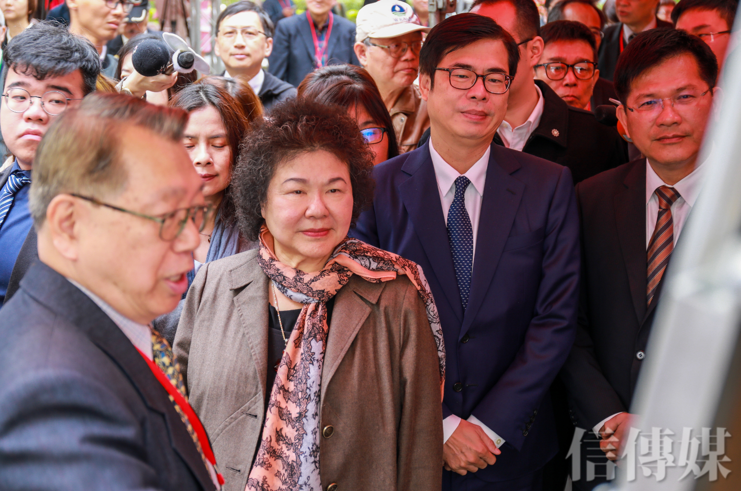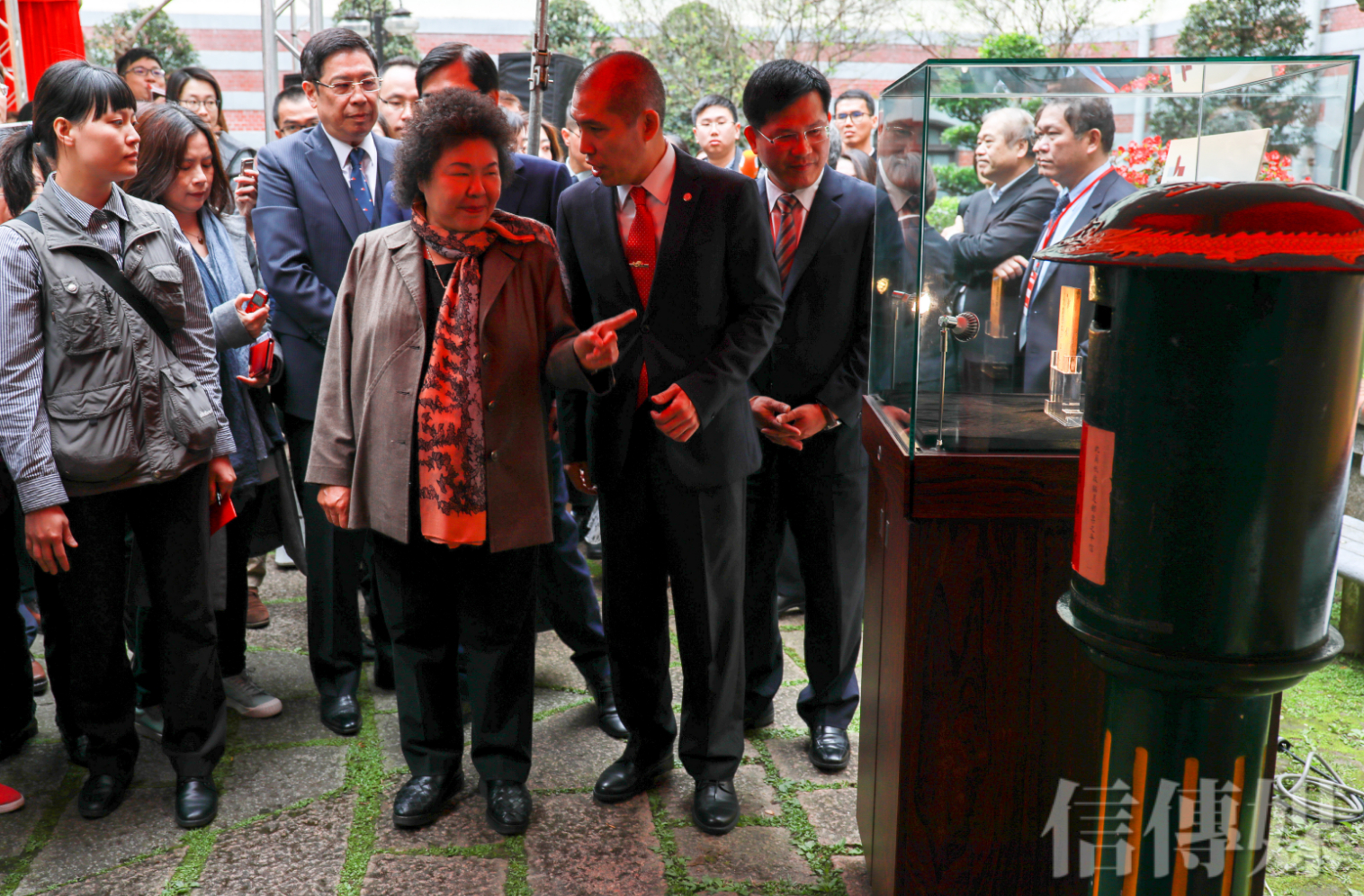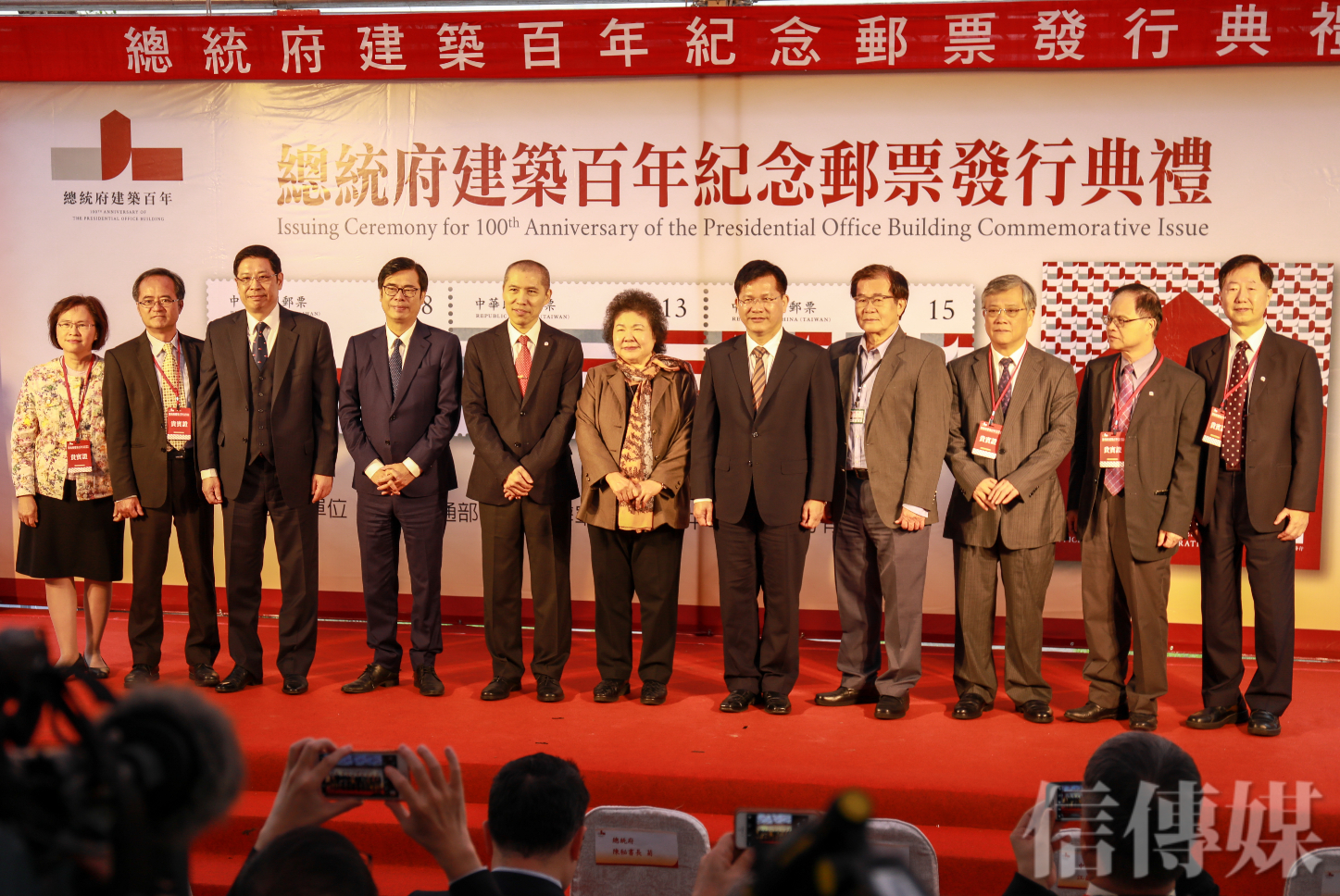 總統府祕書長陳菊、行政院副院長陳其邁、交通部部長林佳龍等人,共同與會為郵票揭幕。