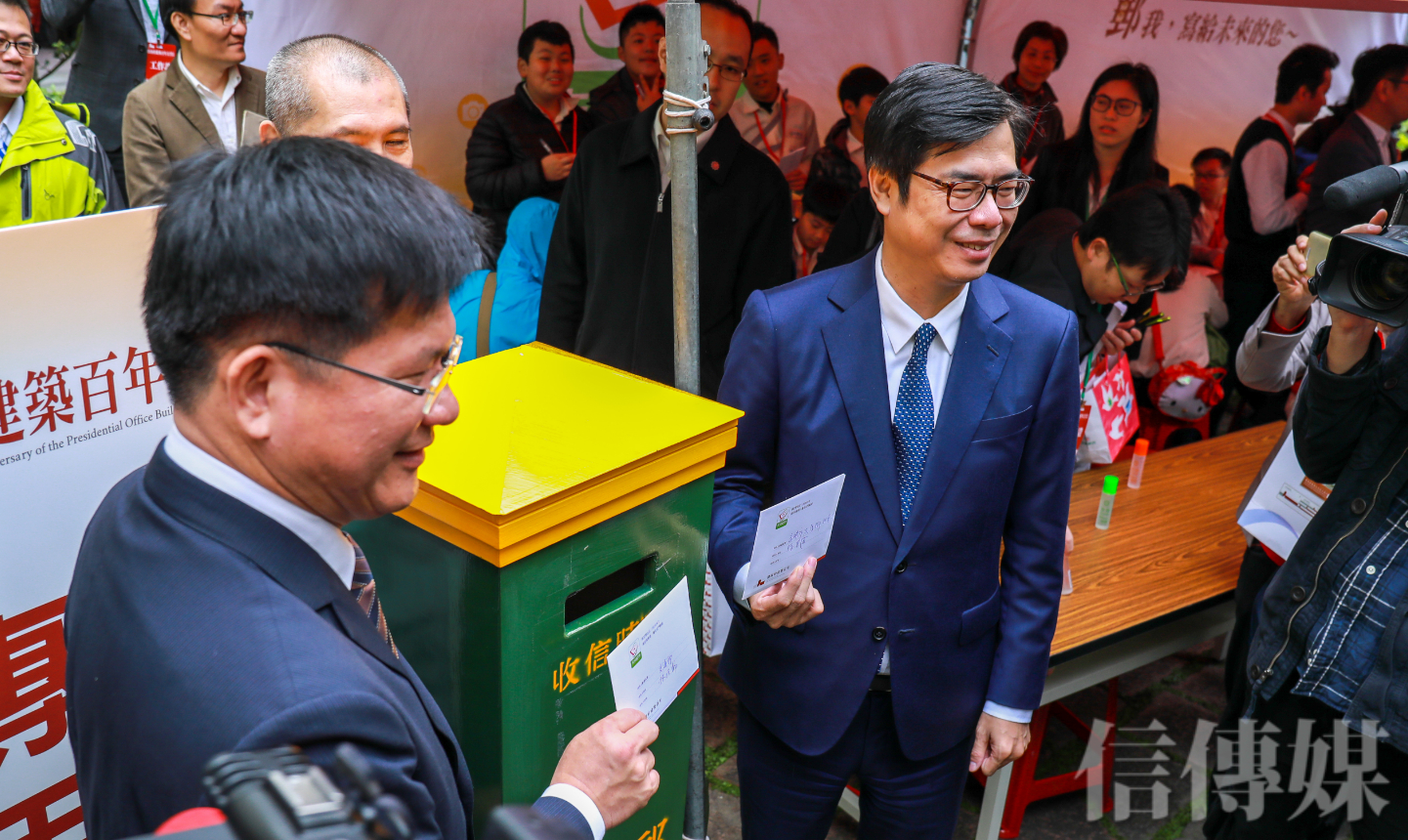 陳菊參觀中華郵政展示物,活動現場也邀請大家共同寫下祝福與期許,寄給一年後想傳達訊息的對象。