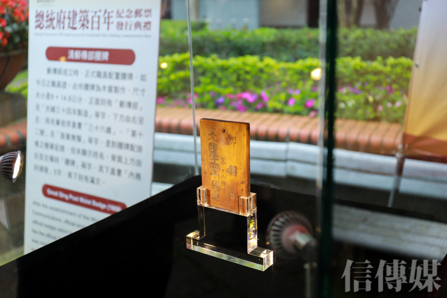 中華郵政展示逾百年歷史的清郵傳部腰牌。
