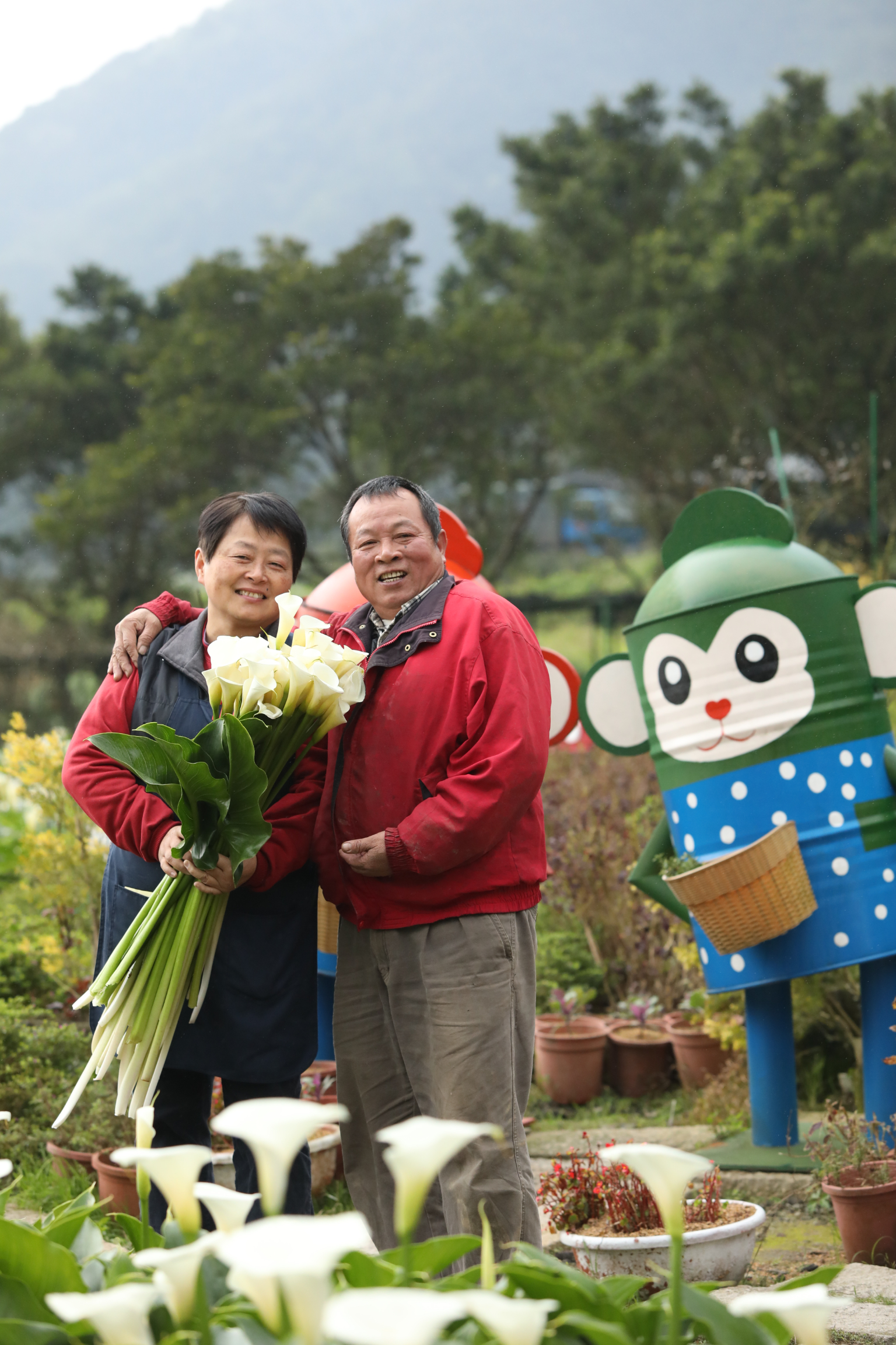 亞熱帶何時能看見白雪,白色海芋田這麼浪漫除了拍照留念,總是要送給公主如白雪般的海芋,看見擋不住的趨勢,一桶桶的海芋擺滿路邊,桶裡一把10支的海芋被抱了回去,最多時期有30多家農民,在路邊設攤,被選中的機率只有1/30。