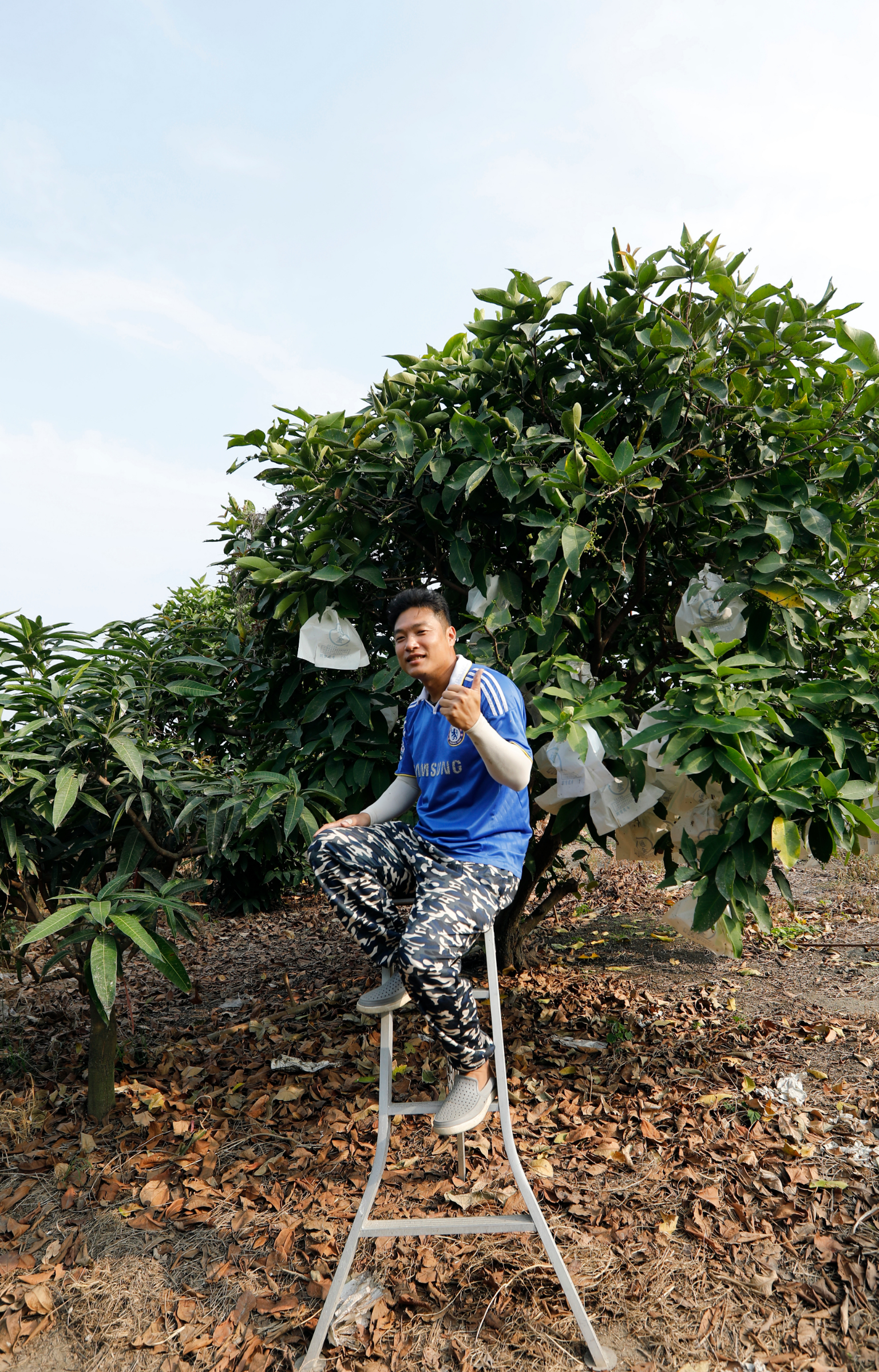 今年暖冬,屏東的太陽和務農的粗重,讓67年次在106年返鄉的鄭欽文看起來像個30歲的陽光男孩、運動高手。
