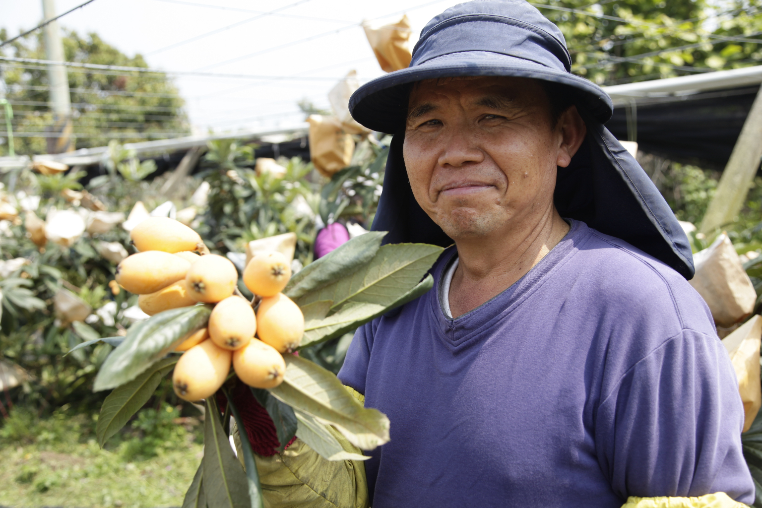 退休後只要農改場或農民學院有相關的課程,總是踴躍參加,漸漸的客戶的口碑和同行的比較,枇杷品質真的不錯,採訪拍照時為了視覺效果,特別請他將套袋取下,沒想到才一轉眼就被鳥擊,大家托鳥之福嚐到了枇杷的滋味,隨行採訪的蕭班長嚐過也說讚!