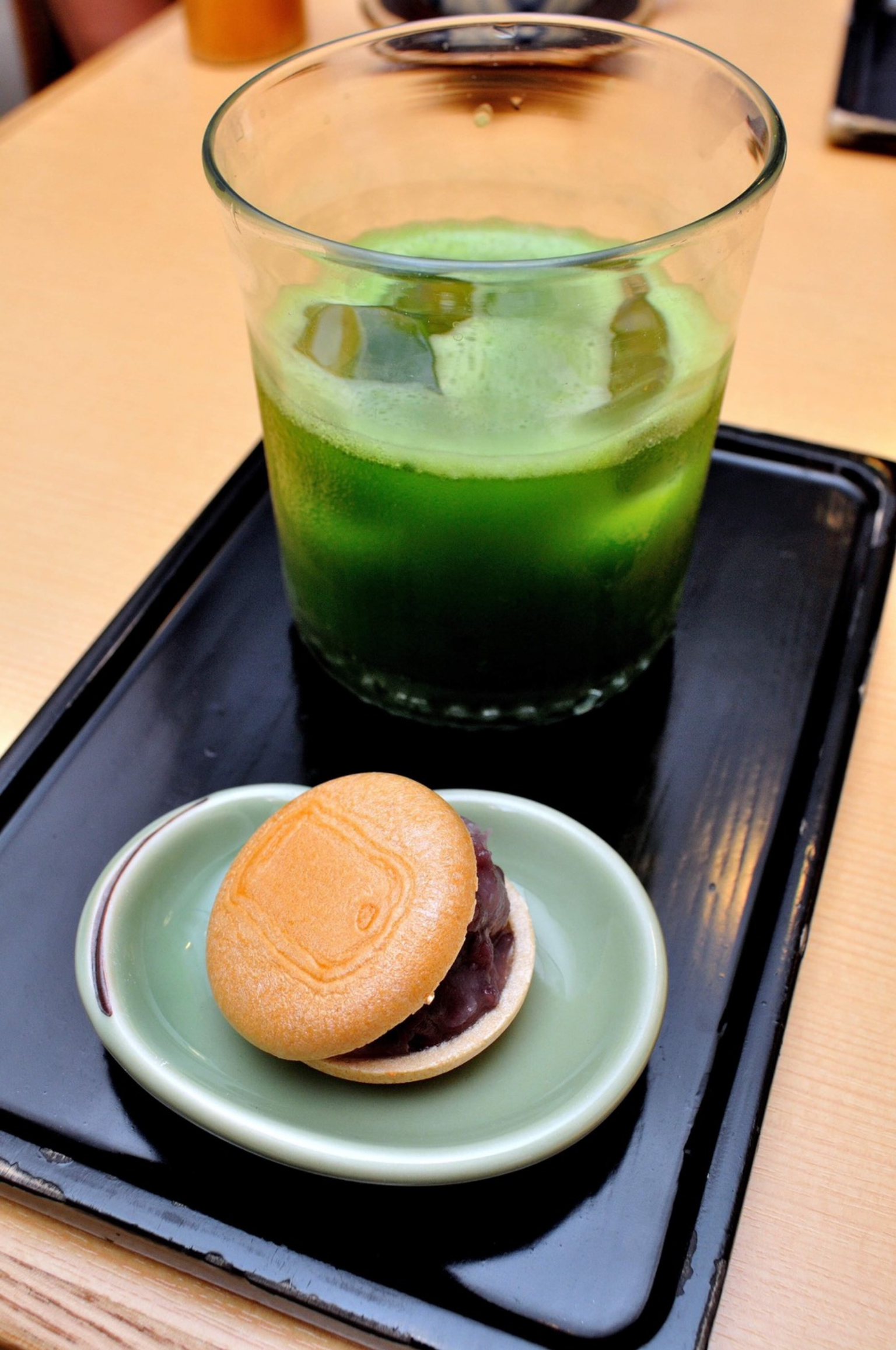 但我還是偏好只有抹茶+紅豆的古典原味,其中的變化在於抹茶,熱的吃法是將煮爛的紅豆添加在熱抹茶中,冰的吃法在紅豆冰上淋上抹茶醬,當然也有不冷不熱的吃法如「紀の善」的招牌甜點「抹茶ババロア」(抹茶巴伐利亞 Maccha Babaroa )。