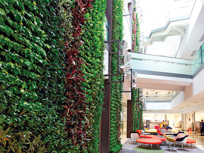 - 南科辦公大樓內的大型植生牆直頂天窗(圖片來源/天下文化提供)