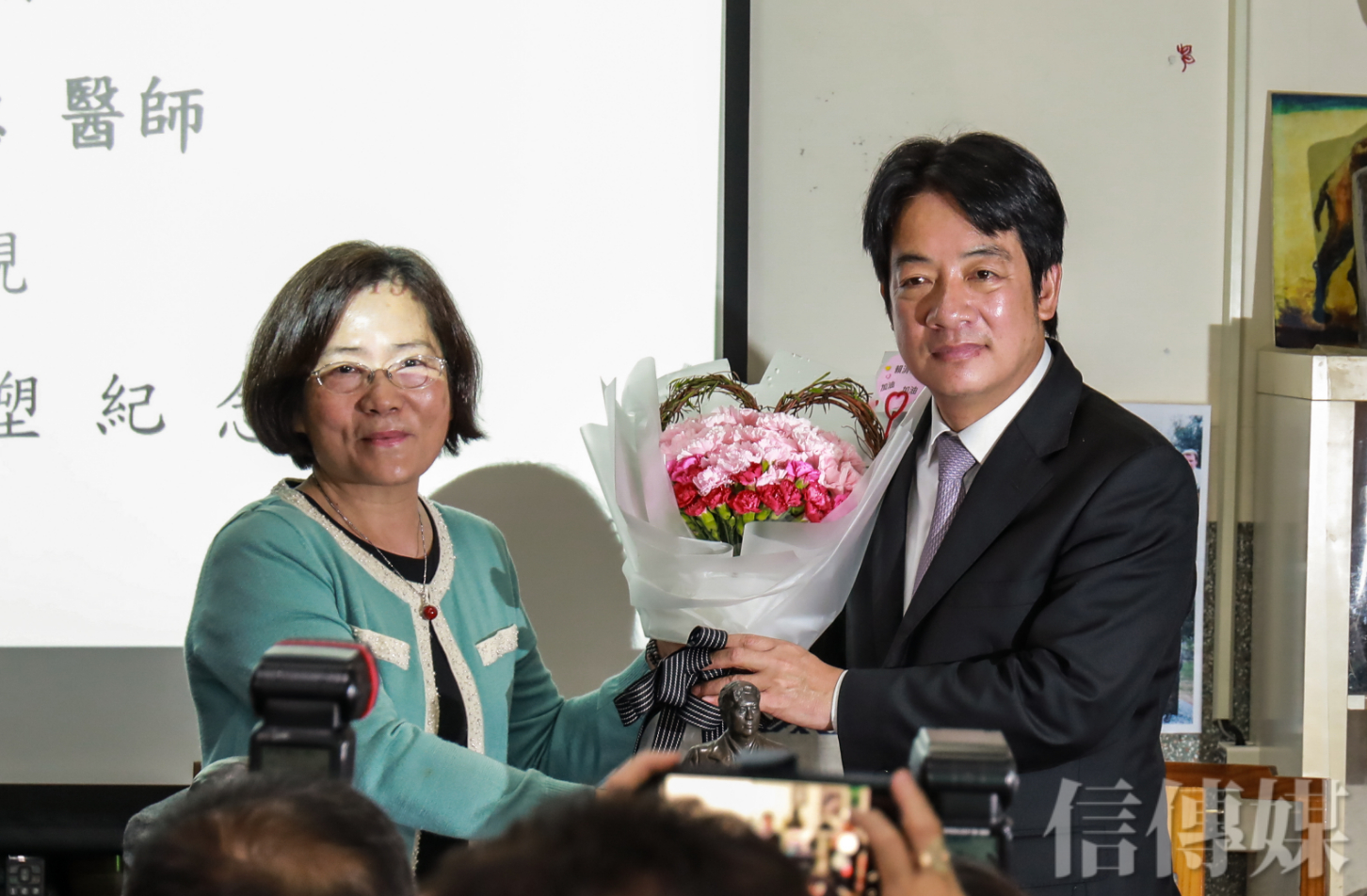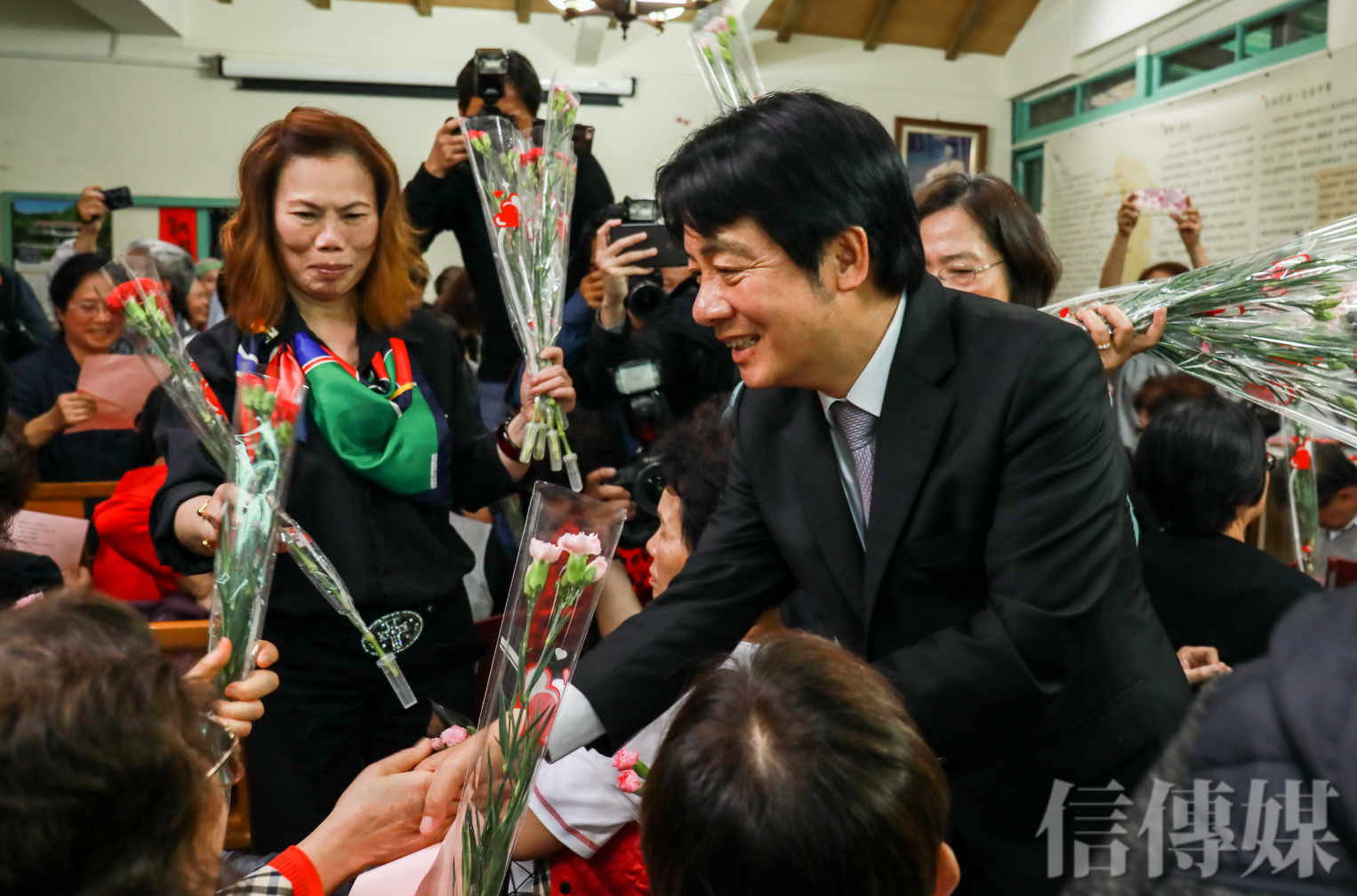 賴清德接受主辦單位獻花,也致贈康乃馨與現場婦女朋友,祝大家母親節快樂。