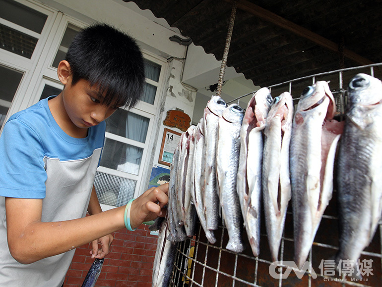 當飛魚送抵學校時,十來位的學生和家長,幫忙把車子裡的飛魚搬下車,逐一分工。學生負責把飛魚上的魚鰭剪掉,方便接手的家長剖開魚肚、清洗內臟,抹上鹽巴、放在掛勾,然後學生再把把一條條處理好的飛魚放上烘架,等待煙燻,做成飛魚乾。