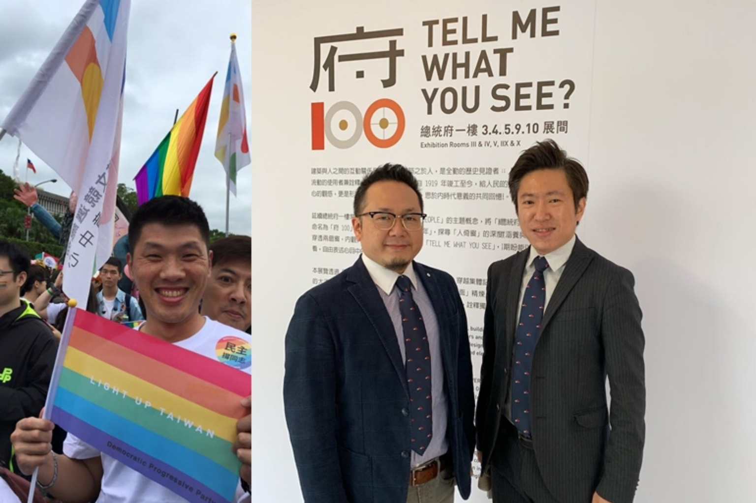 蘇系子弟兵致力於推動婚姻平權。左起:台北市議員王閔生、文總副祕書長李厚慶、總統府發言人張惇涵。(圖片來源/臉書)