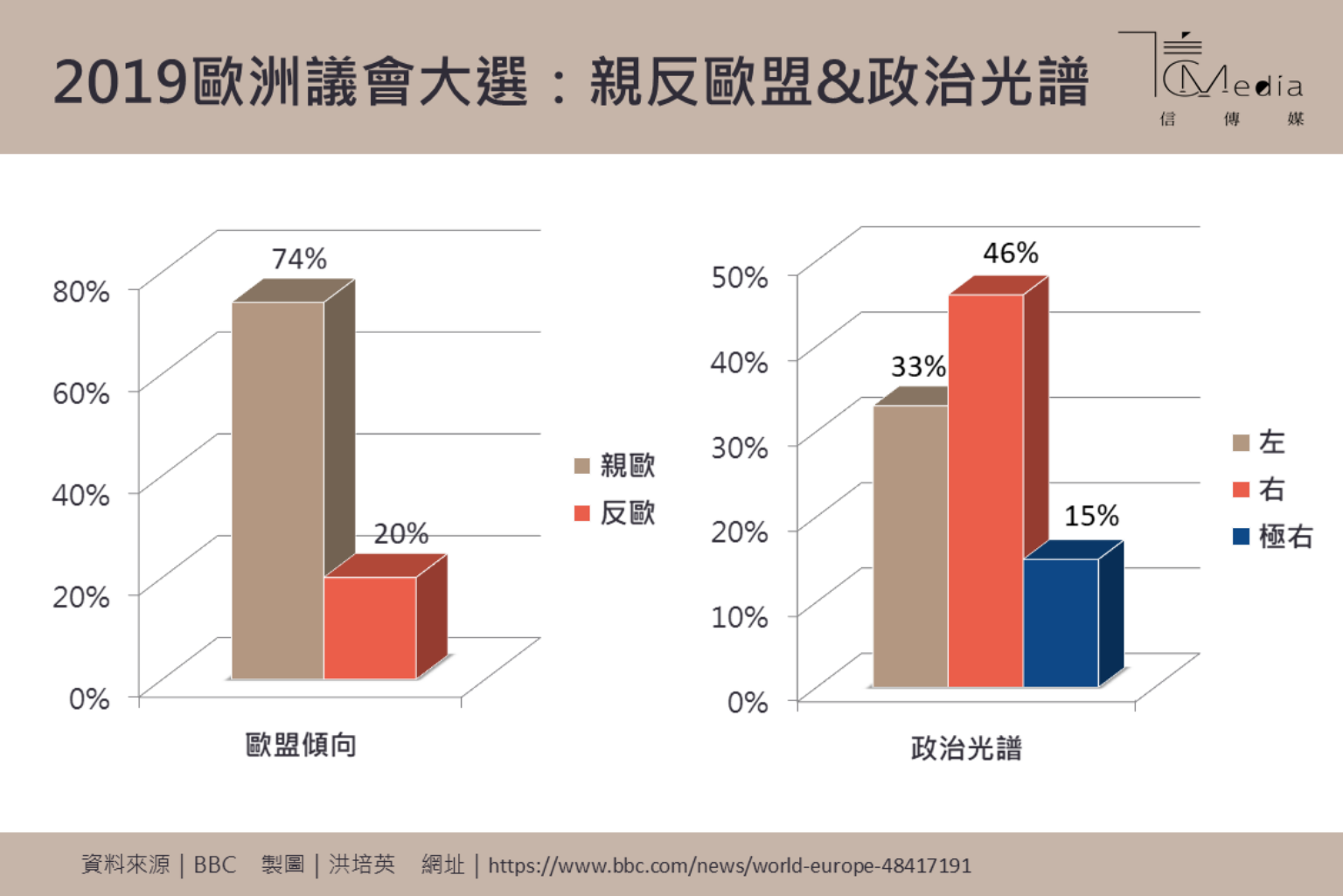 英國脫歐僵局使兩大政黨慘敗,脫歐黨(Breixt Party)一舉拿下29席成最大贏家;德國選情與上述歐盟整體狀況同調,而曾問鼎法國總統的雷朋(Marine Le Pen)領導的極右翼國民聯盟(Rassemblement National)成法國席次最多的政黨。