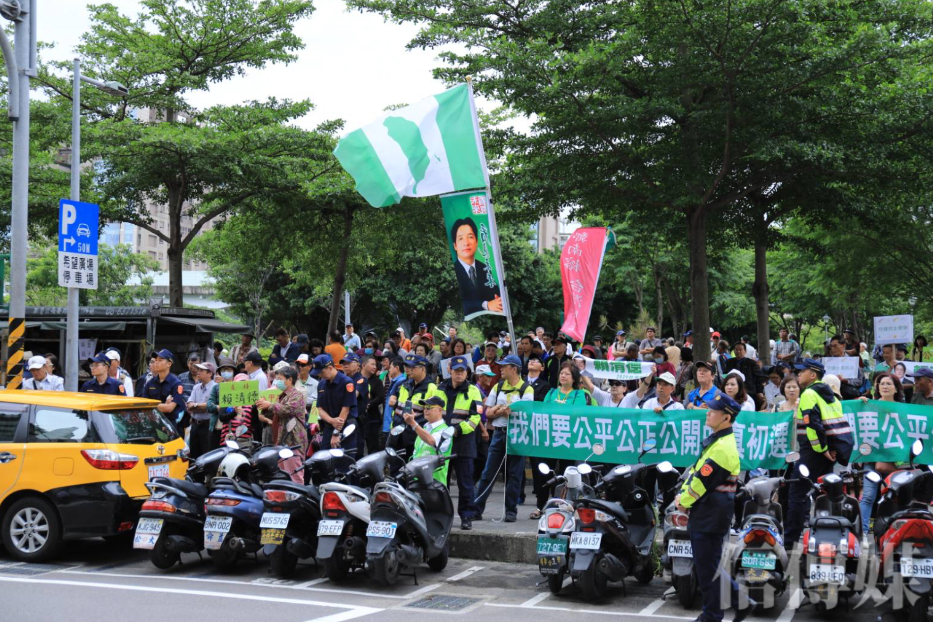 不過,深綠團體繼上周之後,又集結在中央黨部附近的北平東路,且有不少知名獨派人士陸續發表演講,揚言中執會若以「決議」破壞既定初選制度,不但2020不會支持蔡英文,而且不排除發動「割綠委」運動,「讓名列中執委、中常委的立委、議員消失於政壇」。雖然卓榮泰會前呼籲支持者及泛綠團體,不用動員前來中央黨部關心,挺英人士只有一輛插著黨旗與美國國旗的宣傳車經過,但挺賴的北社等本土社團則有數百人。