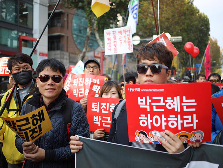 「11/12 百萬燭光下的抗爭」堪稱南韓2000年以後最大規模的抗議活動,11月12日下午兩點開始,韓國首爾光化門開始聚集大批民眾上街示威遊行,同一時間在釜山、大邱等地區都有大型抗議活動紛紛響應。而這次集會的主要族群樣貌幾乎是由由青少年和女性為主,和以往南韓街頭運動中以男性為主體的遊行隊伍大不相同。因此抗爭過程的氛圍、訴求方式都和以往的方式不太一樣。