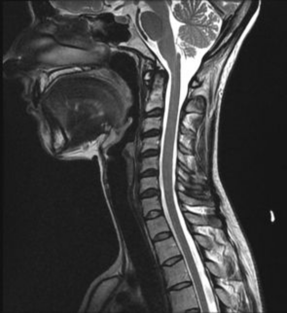 (2)脊髓病變(Myelopathy):出現身體或下肢的麻痛,走路不穩,兩腳麻頓感,甚至大小便失禁控制不良。