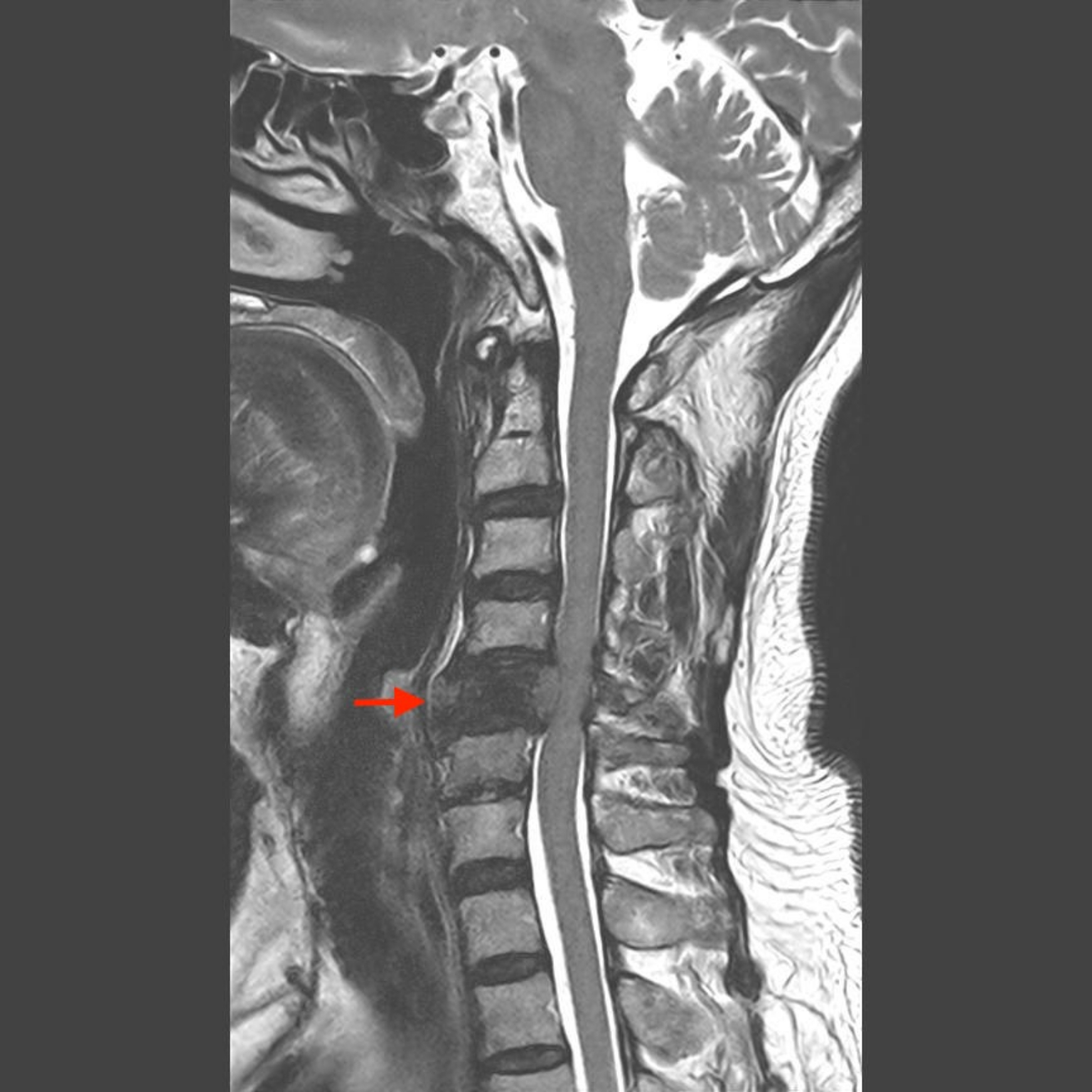 醫師能夠提供的服務,最重要的是診斷 : 頸椎狹窄的病因有許多,從發生率最高的椎間盤突出(俗稱骨刺)(圖2)、亞洲人(日本、韓國、台灣) 較常發生的後縱韌帶鈣化、到惡性腫瘤骨轉移(常見的攝護腺癌、肺癌、乳癌)(圖3)都有可能。從最基本的頸部X光到精密的核磁共振,醫師會依照症狀選擇合適的診斷工具。