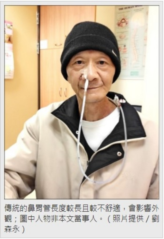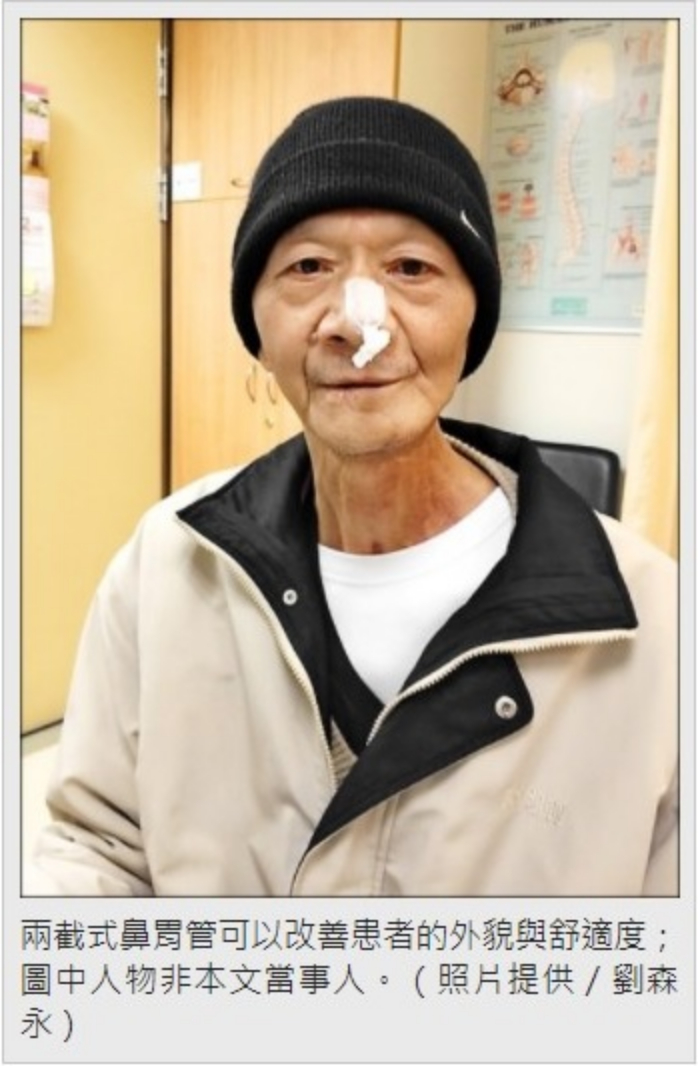 彰基復健科劉森永醫師新型鼻胃管發明—兩截式鼻胃管,可以改善非常在意的外觀、不小心誤拔(例如穿衣、盥洗與睡眠等),解決使用傳統鼻胃管臨床上與生活中所面臨的問題,進而提升醫療與生活品質。