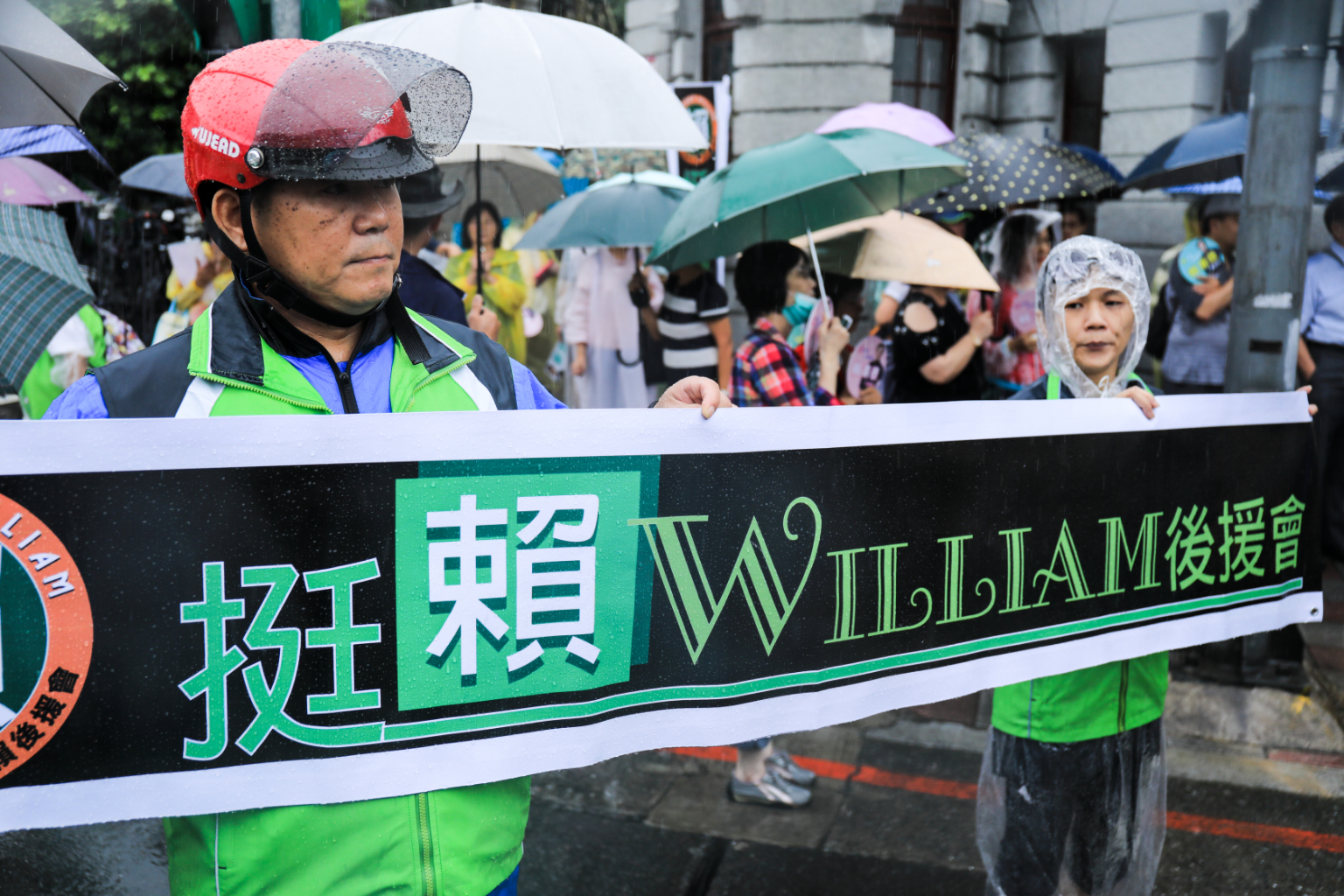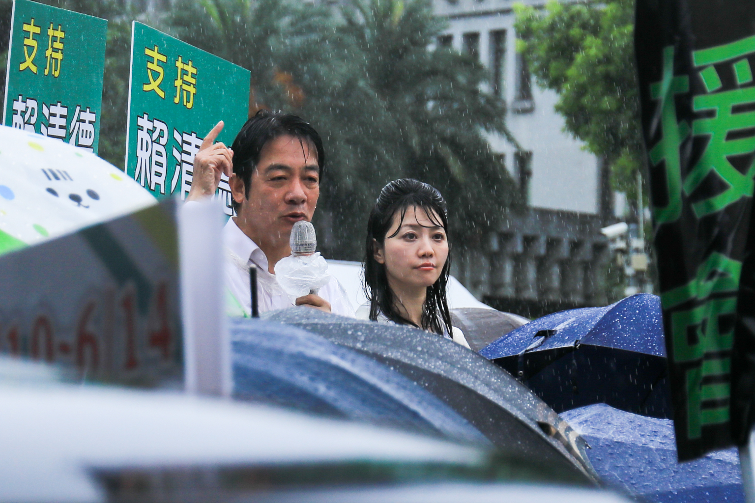 車隊的最終站是凱達格蘭大道,雖然當下面臨超大豪雨,但仍有許多支持者前來看賴清德和台北市議員高嘉瑜合體,也不停高喊「賴總統好」。