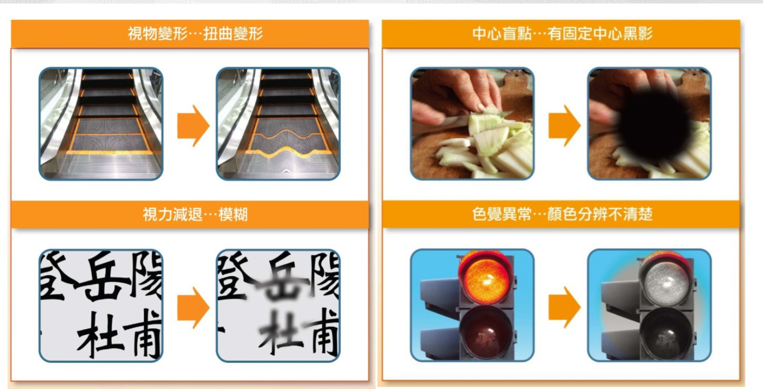 林口長庚醫院眼科部部長吳為吉表示,近年來民眾高度用眼比例大幅上升,眼睛長期接受光線慢性刺激,視網膜血管受損,導致黃斑部病變患病年齡逐漸下降。「而糖尿病患者罹患黃斑部病變風險更高於一般人,常見視力模糊、視野扭曲變形、視野出現黑影等症狀,是致盲的主因之一。」