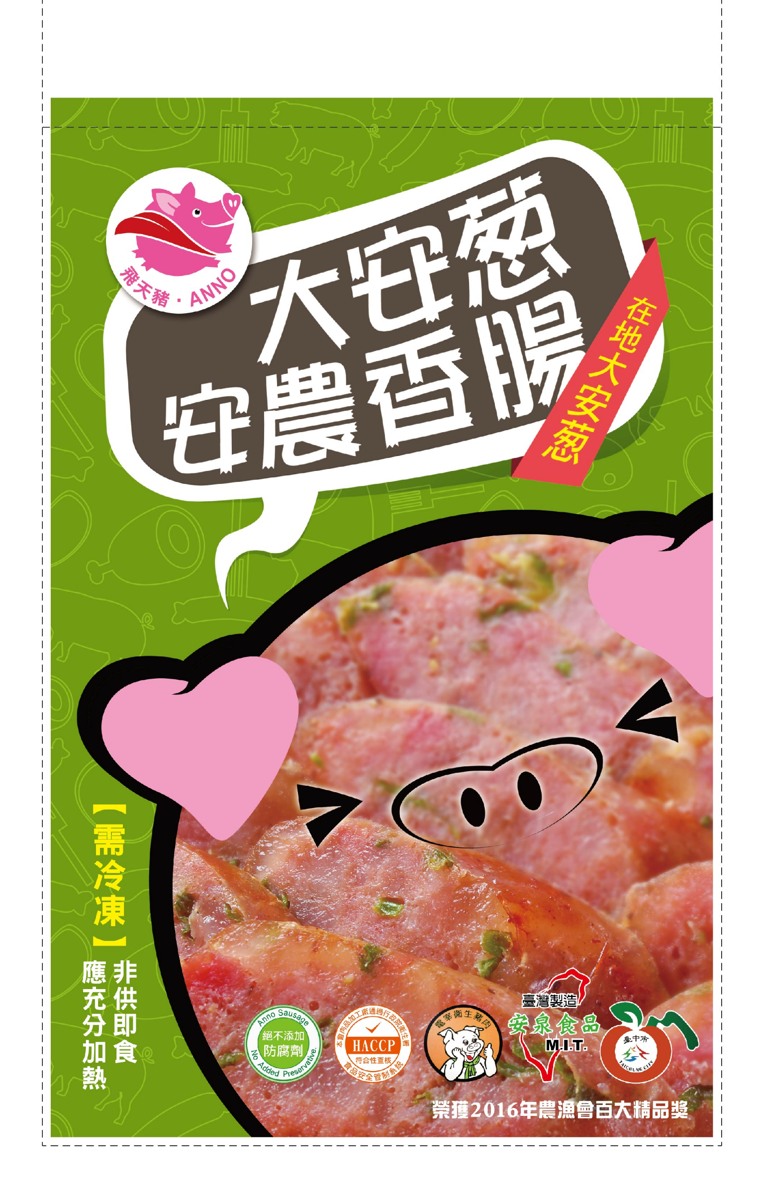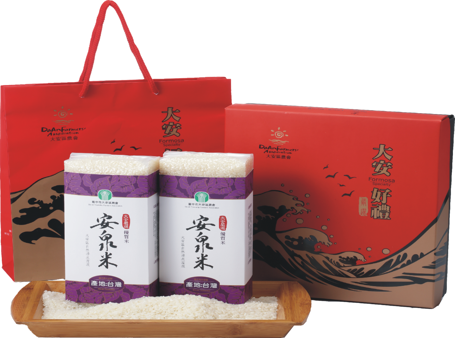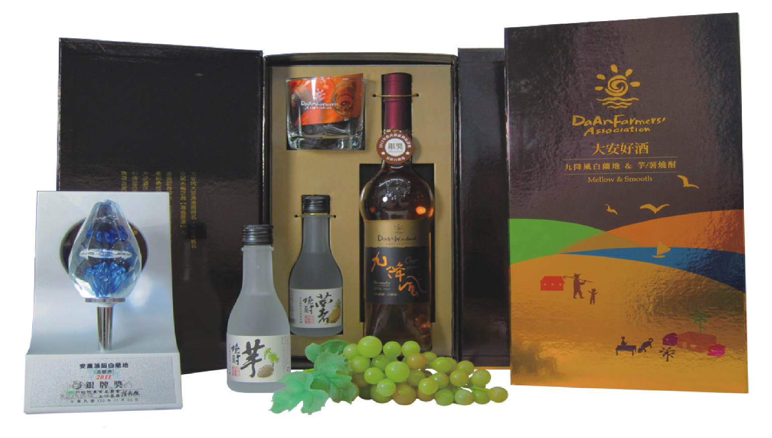 此外,以「安農五寶」共同行銷在地的香腸、青蔥、芋頭、酒、米,102~108年台灣農漁會百大精品競賽,就囊括六項:大安好酒禮盒(九降風白蘭地、芋燒酎)、葱師傅青葱脆餅、安農香腸禮盒(三種口味原味葡萄酒、大安葱、芋頭)、安泉米禮盒、大安偶芋禮盒、大安好禮,成績斐然。
