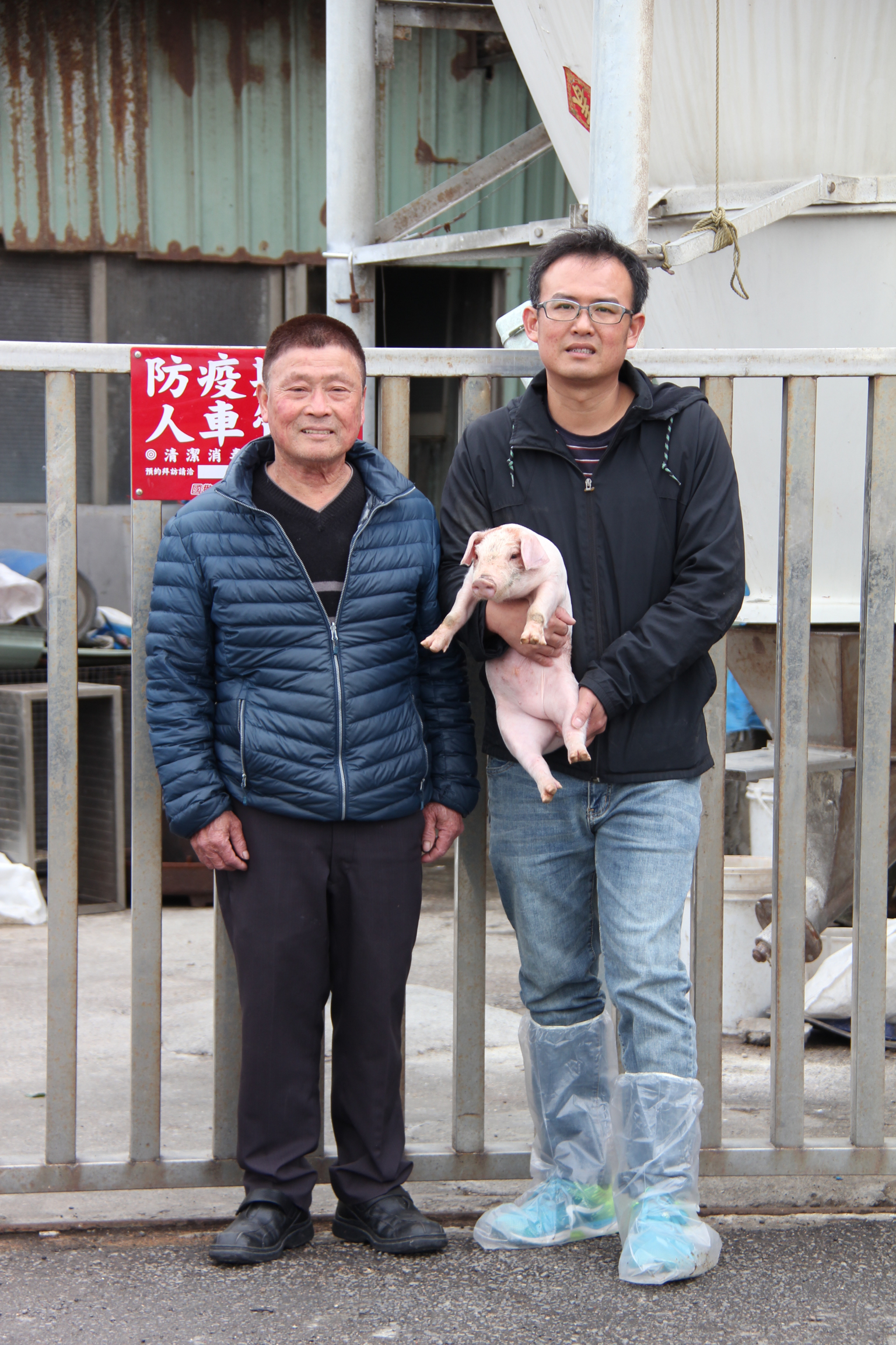 返鄉青農邱國浴(右)與父親莊木添(左)一起經營養豬事業,秉持飼養健康豬的良心理念,在農會輔導下導入產銷履歷,場舍符合環保規範,為安農的畜產加工品把守第一關。