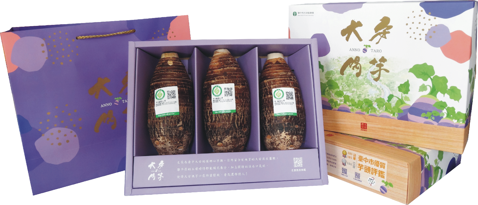 臺中市大安區農會的「安農五寶」—豬肉、芋頭、青葱、米、酒,皆通過產銷履歷認證,也能追溯到生產達人喔!