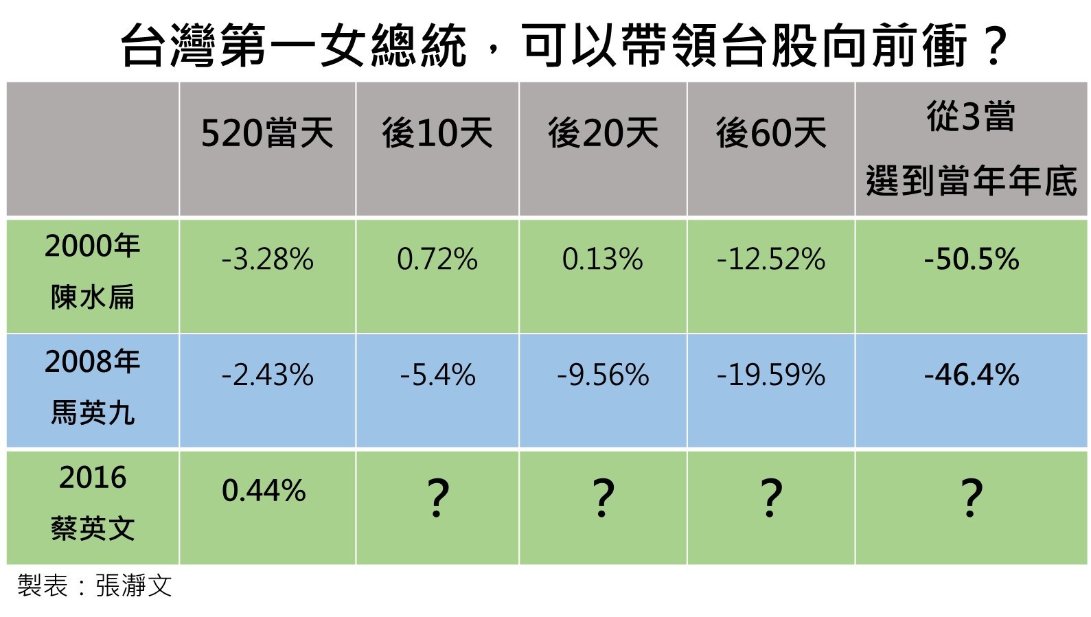 2千年的政黨輪替讓大家餘悸猶存,2008年馬政府的520就職行情更是讓全市場跌破眼鏡。