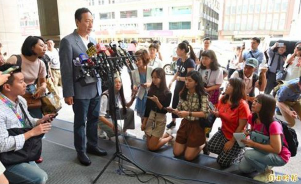 記者跪著採訪已經很離譜了,郭董還自爆與商總理事長賴正鎰的結怨始末,這也讓他提出的「0-6歲幼兒國家養」和「富人稅」等財經政見失焦,大家反而都關注郭與賴的爭執。