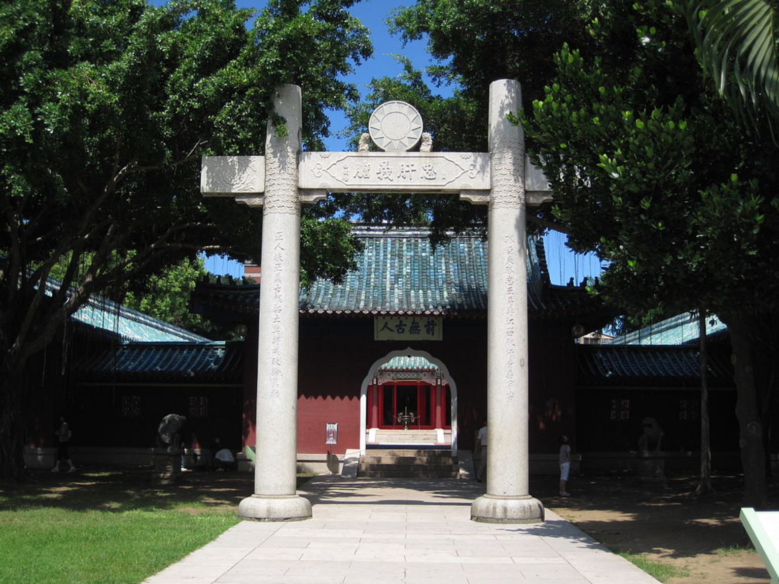 清廷初期將鄭成功視為叛國與海賊,然為安撫民間對鄭的崇敬,康熙帝乃楹聯:「四鎮多二心,兩島屯師,敢向東南爭半壁;諸王無寸土,一隅抗志,方知海外有孤忠」,肯定他的忠誠和勇氣;清末光緒帝則追諡「忠義典範」,並准立祠,一改百年來的禁忌,轉與民間情感和解,同時盼能激發皇民的忠義精神,對抗諸國列強。