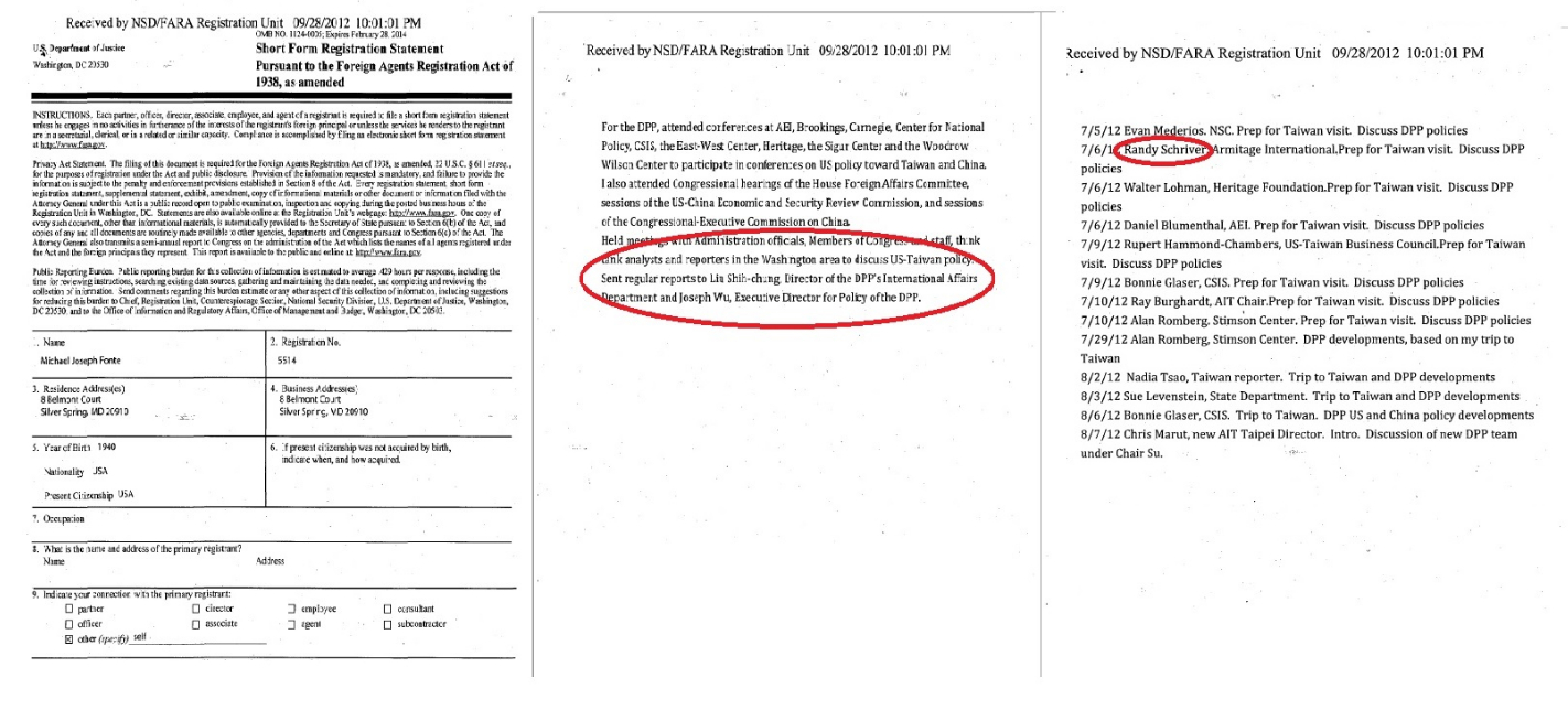 該份2012年司法部報告內還紀載了「Sent regular reports to Liu Shih-chung, Director of the DPP's International Affairs Department and Joseph Wu, Executive Director for Policy of the DPP.」,阿米塔吉顧問公司定期向吳釗燮和民進黨國際事務部主任劉世忠呈送報告。