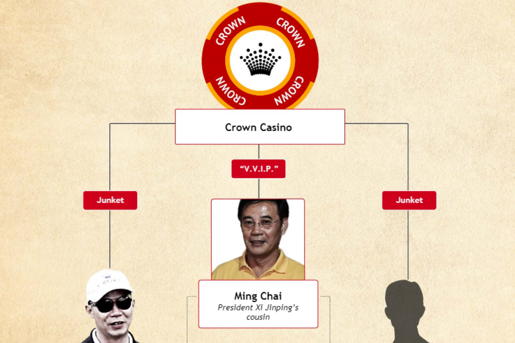 在某些情況下,香港古老的黑幫組織「三合會」老大負責招攬豪擲千金的中國賭客,並且幫助中共在澳洲進行滲透,但是周九明以更隱蔽的技巧招攬生意,通過他的「唐人街中介」將中國賭徒大量匯集到澳洲,好讓他們在皇冠賭場下注數十億美元的賭資。