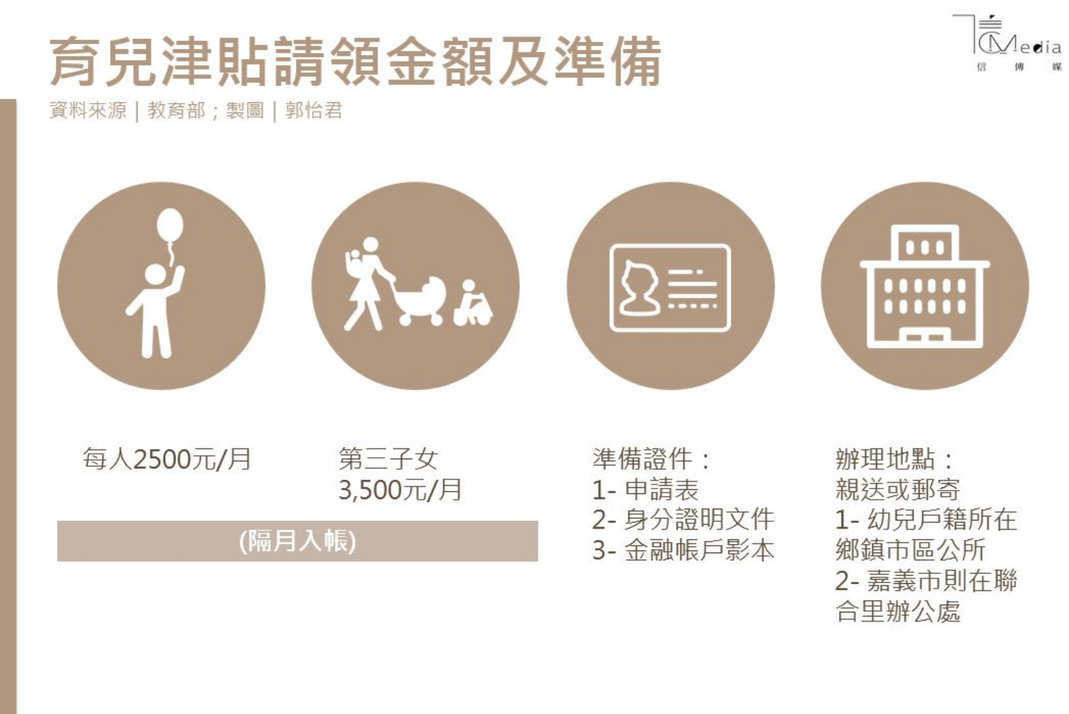 8月開始育兒津貼準備開跑囉~快快準備相關證件申請吧!(圖文設計/郭怡君)