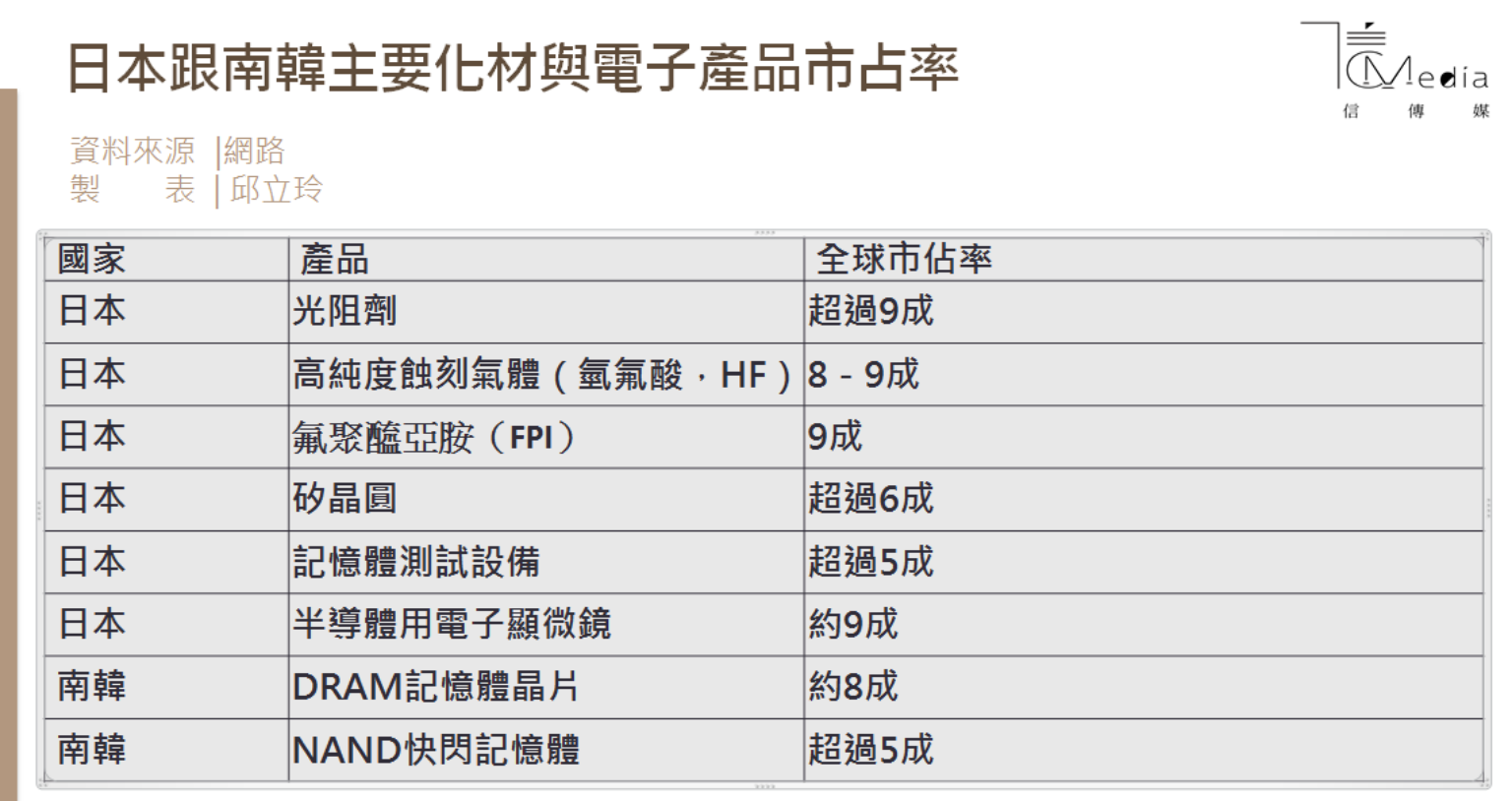 日本跟南韓8月2日相互把對方都踢出白名單(貿易優惠名單)後,不僅會造成全球半導體供應恐斷鏈,南韓也開始管制對日本的半導體成品的出口。