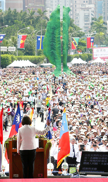 民眾現場見證台灣第一位的女總統宣布就職。(台北市攝影記者聯誼會提供)