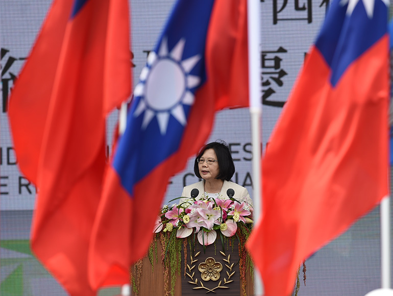 總統蔡英文在就職慶祝大會上發表就職演說。(台北市攝影記者聯誼會提供)