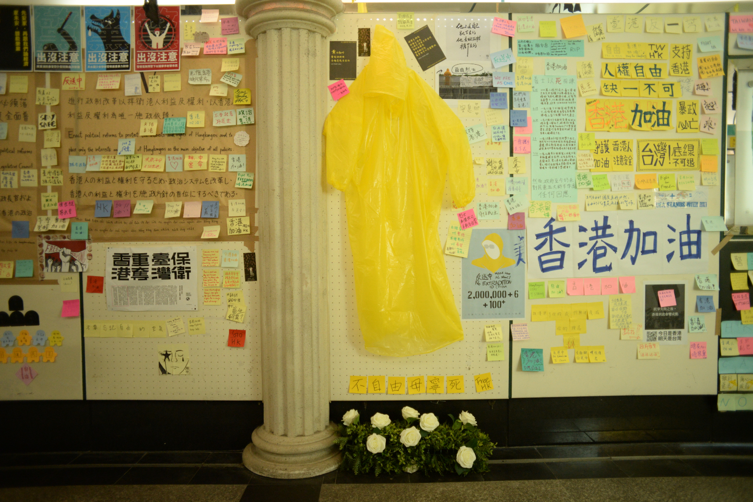 「哇!好漂亮!」一個跑進地下道的男孩忍不住大喊。雖然參與者以年輕人為多,但不時也能看到父母帶著孩子一一瀏覽貼文,向他們解釋香港正在發生什麼事。