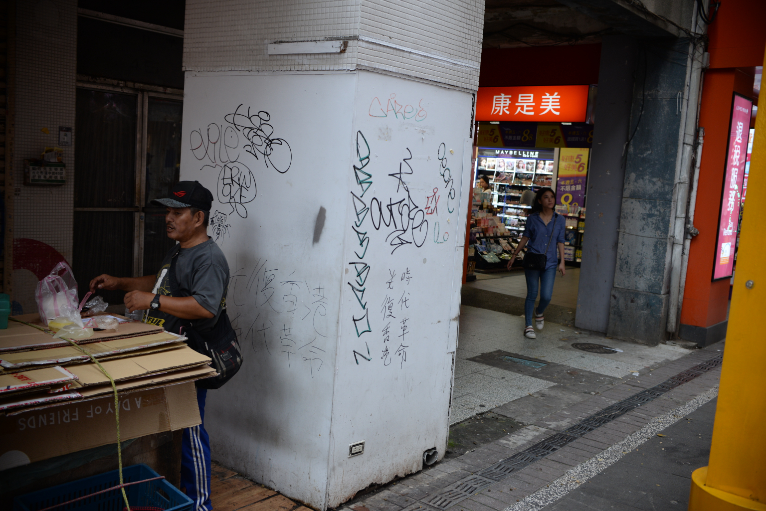然而,8月15日卻傳出有人破壞連儂牆,不過16日記者來到現場時,被撕毀的部分已經被更多海報覆蓋過去。