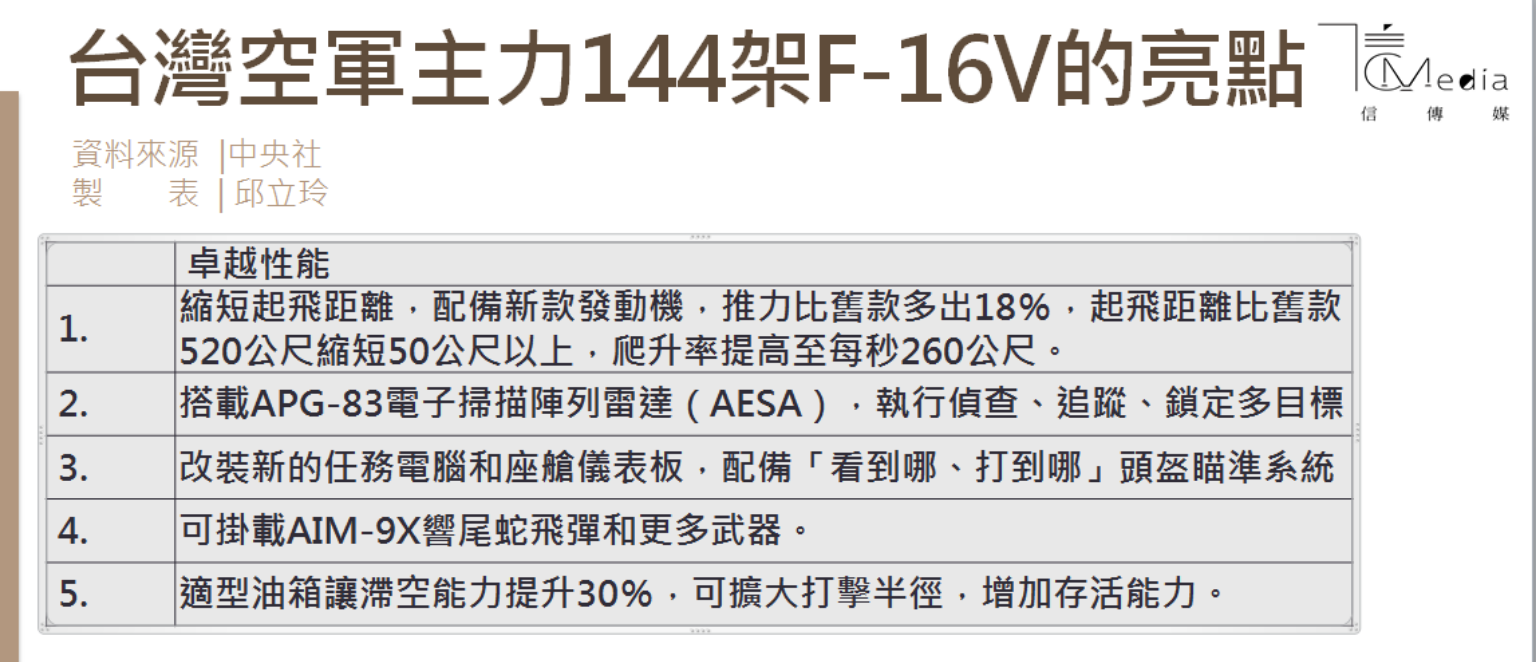 F-16V是F-16戰機的最先進版本,已成為台灣空軍的支柱,台灣將使用F-16V取代未來幾年退役的F-5E / F戰機