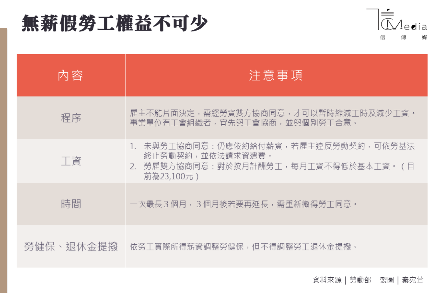 勞工被放無薪假,如何保障自身權益是相當重要的。事實上,雇主是不能片面決定要不要放無薪假的,而是要由勞資雙方協商同意,雇主才能讓勞工放無薪假。