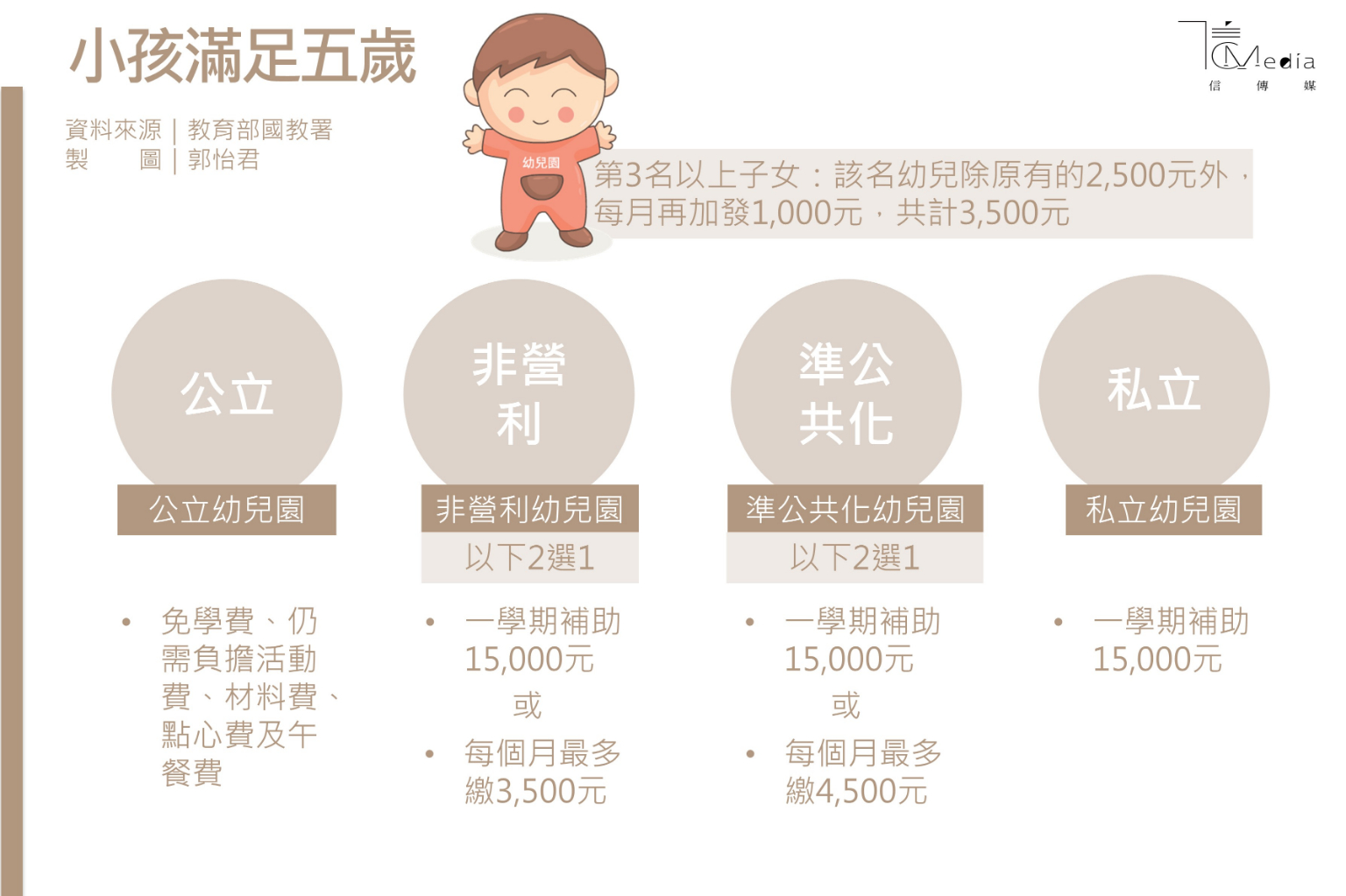 如果就讀公幼、非營利幼兒園及準公共化幼兒園者,也有相關福利,信傳媒整理了一覽表提供爸媽們作為參考。