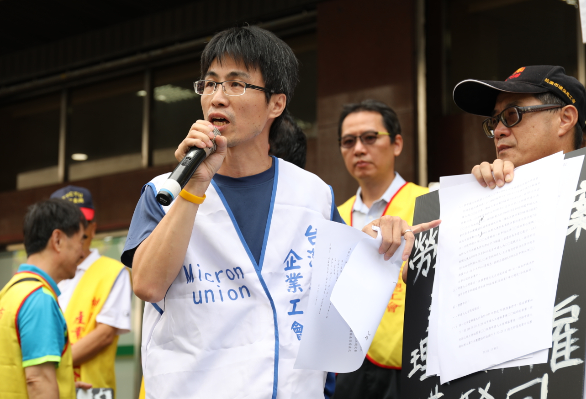 遭美光企業公司不當解雇的馮澤原,控訴裁決委員的種種罪狀。( 攝影 / 趙世勳)