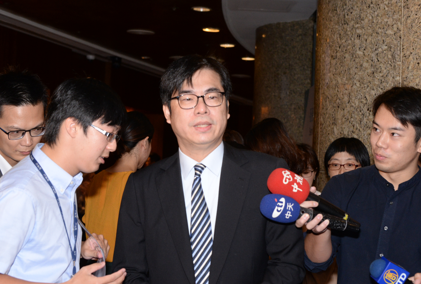 陳其邁今日於5G高峰會致詞,但眾多媒體於聯訪時則聚焦黨政話題在他身上。(攝影 / 趙世勳)