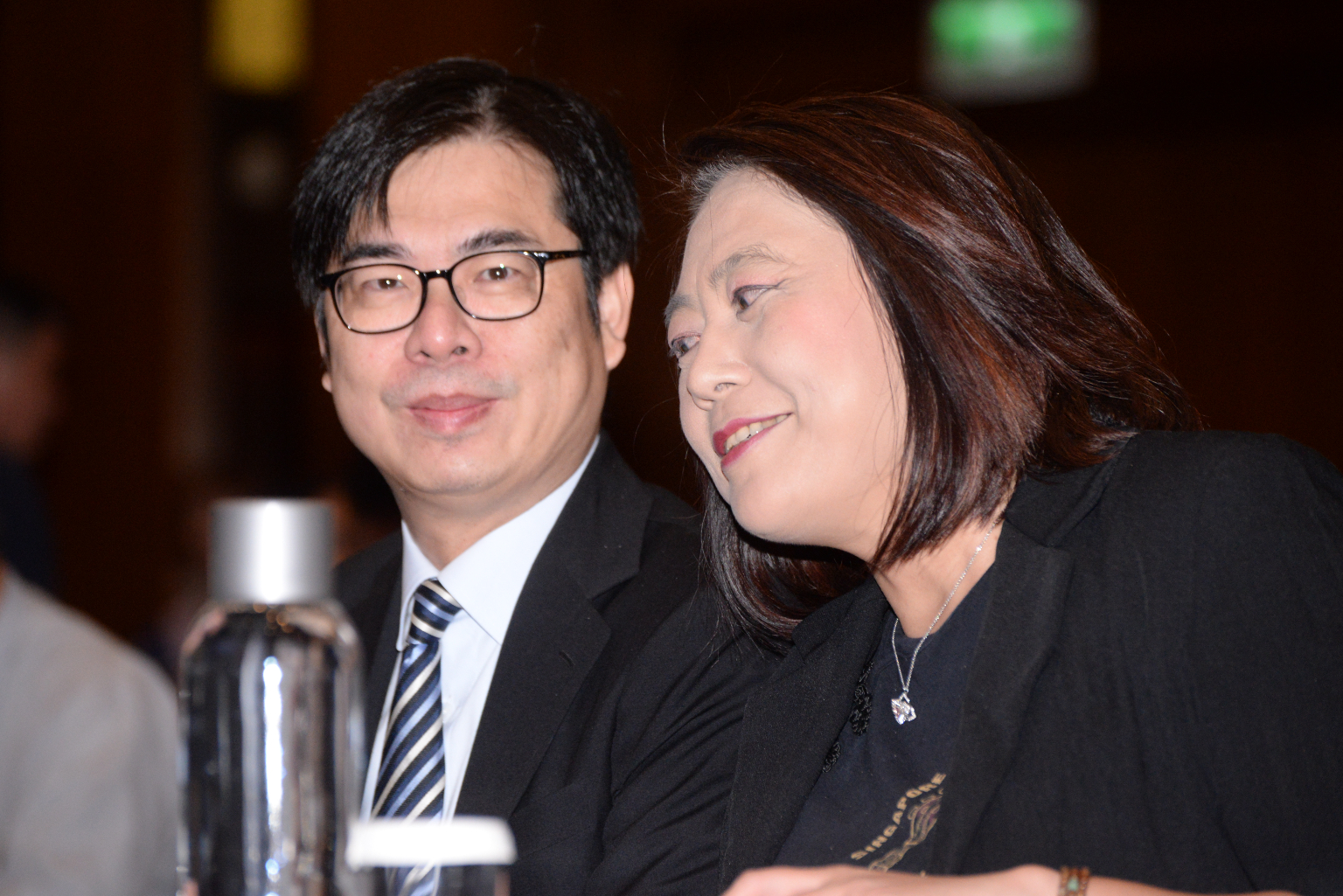 陳其邁與國家通訊委員會前主委詹婷怡台下同坐,兩人相談甚歡。(攝影 / 趙世勳)