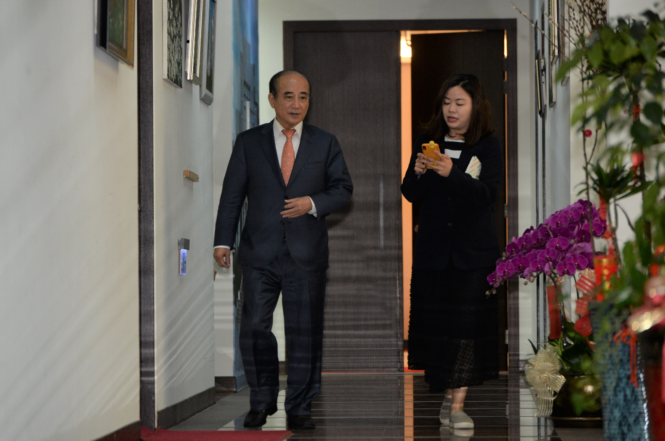 記者會開始前王金平正與助理確認行程,可見自卸下院長職位後仍然繁忙。(攝影 / 趙世勳)