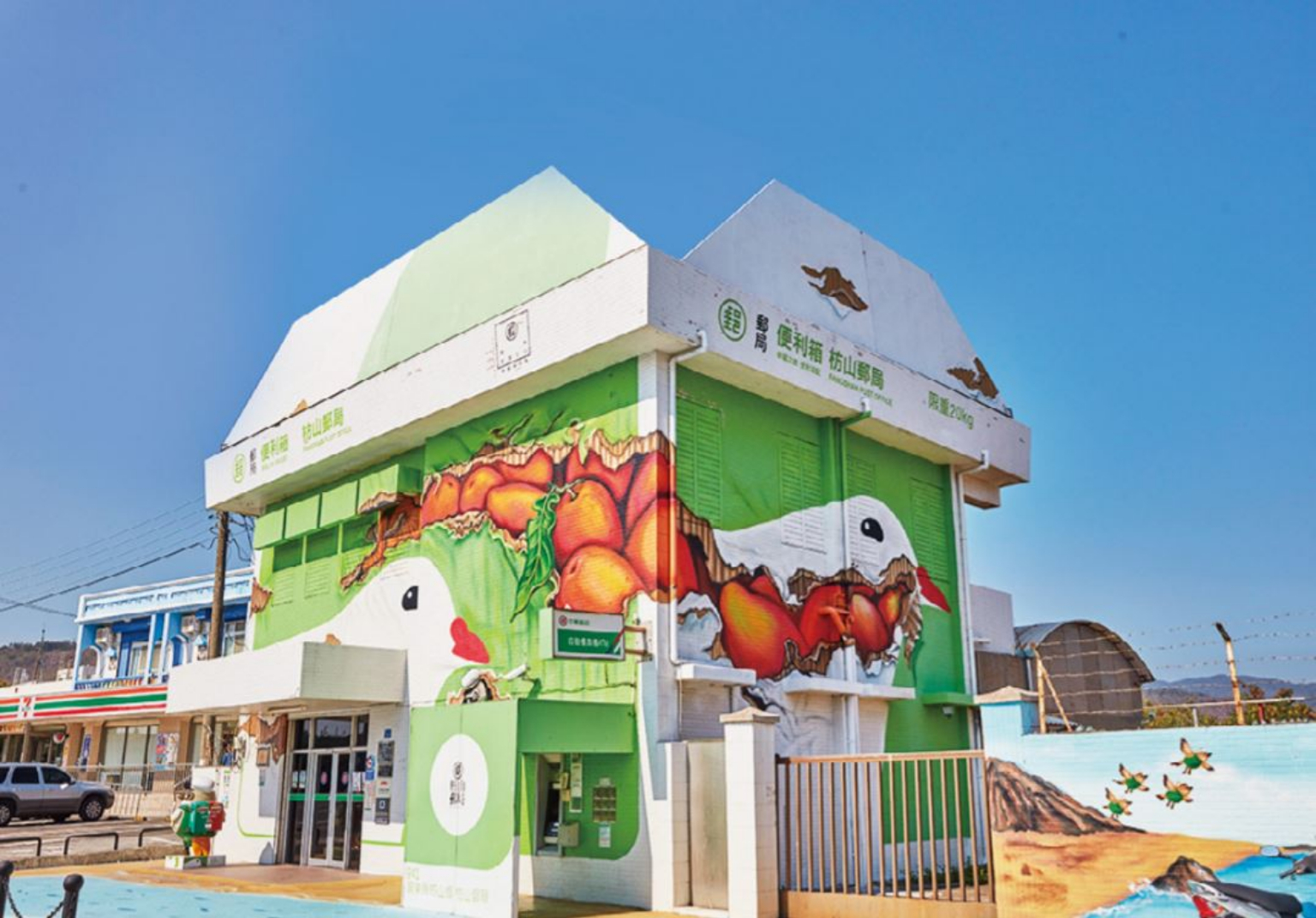 枋山郵局是中華郵政首度將地方特色融入的郵局建築,以郵局便利箱的造型,將碩大的愛文芒果以 3D 立體彩繪的手法繪於牆面,讓枋山意象更加鮮明;並在屋頂上裝設太陽能光電板,結合綠能與文藝特色,成為枋山近年來最熱門的打卡景點。更特別的是,在整點時會準時上演開箱秀,將便利箱之樣貌臨摹得唯妙唯肖。