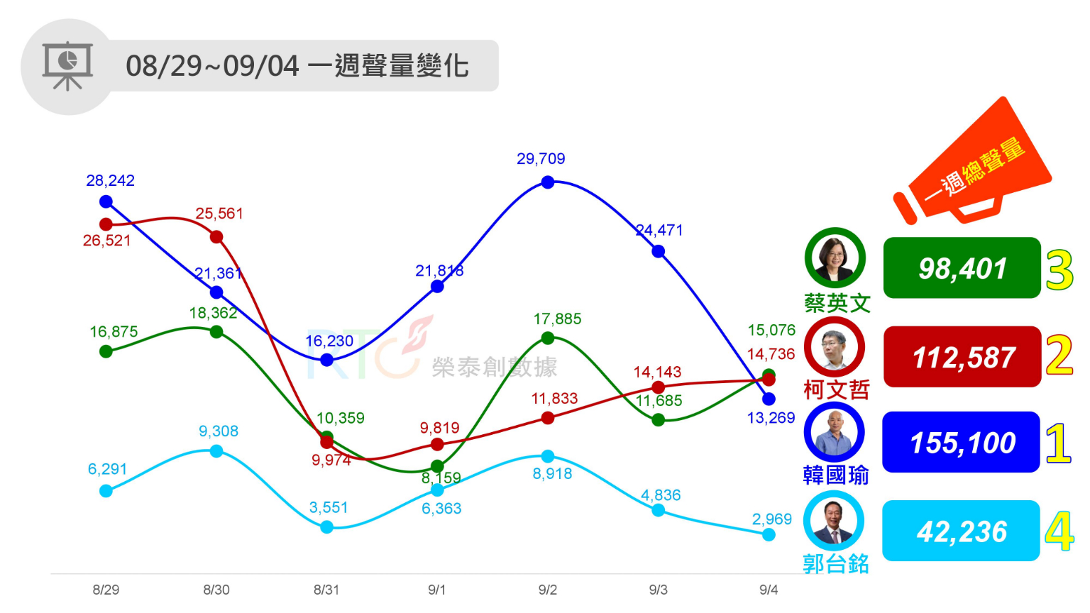 今日我最大「聲」》904政治人物聲量最新報告