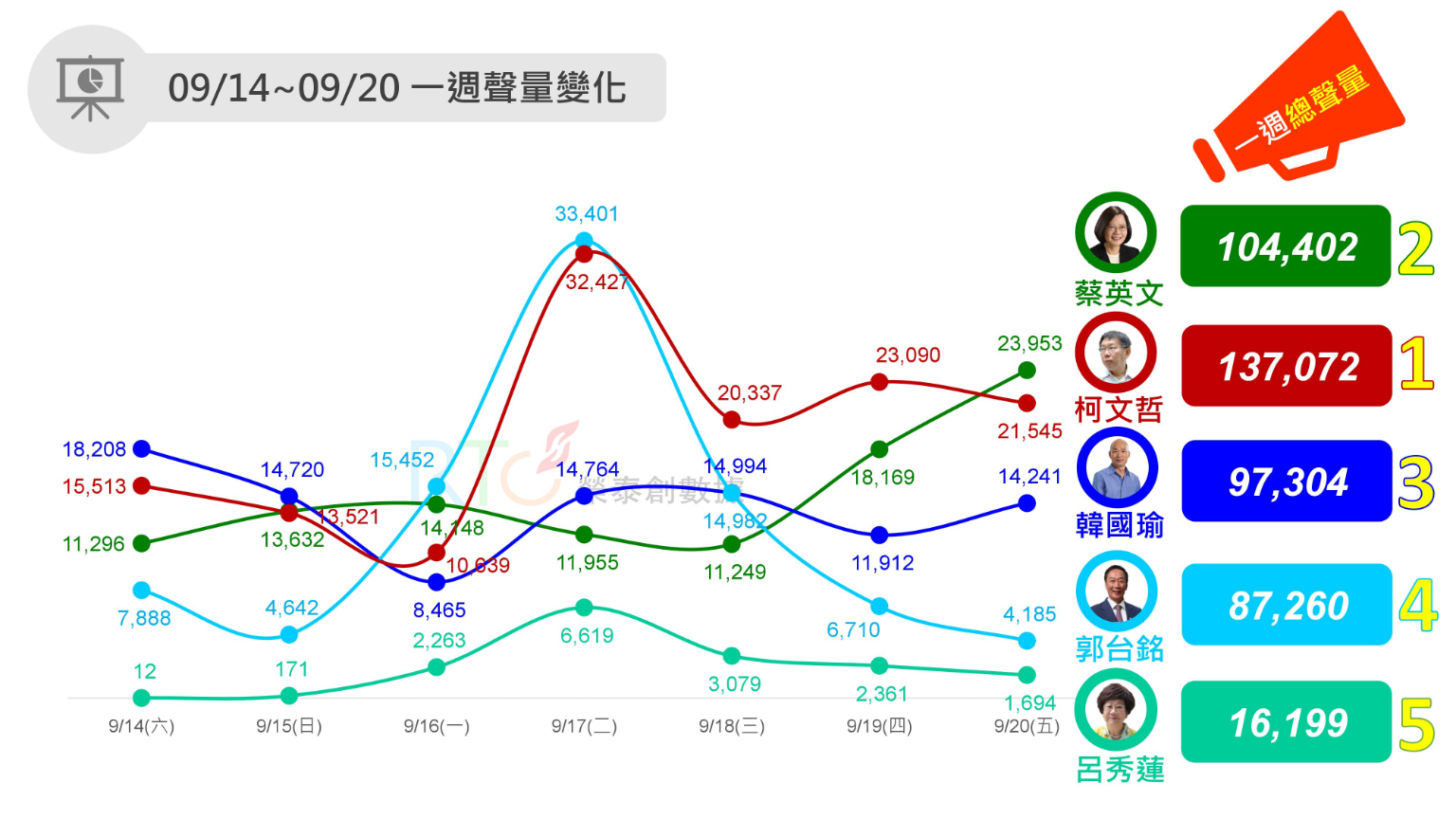 今日我最大「聲」》920政治人物聲量最新報告