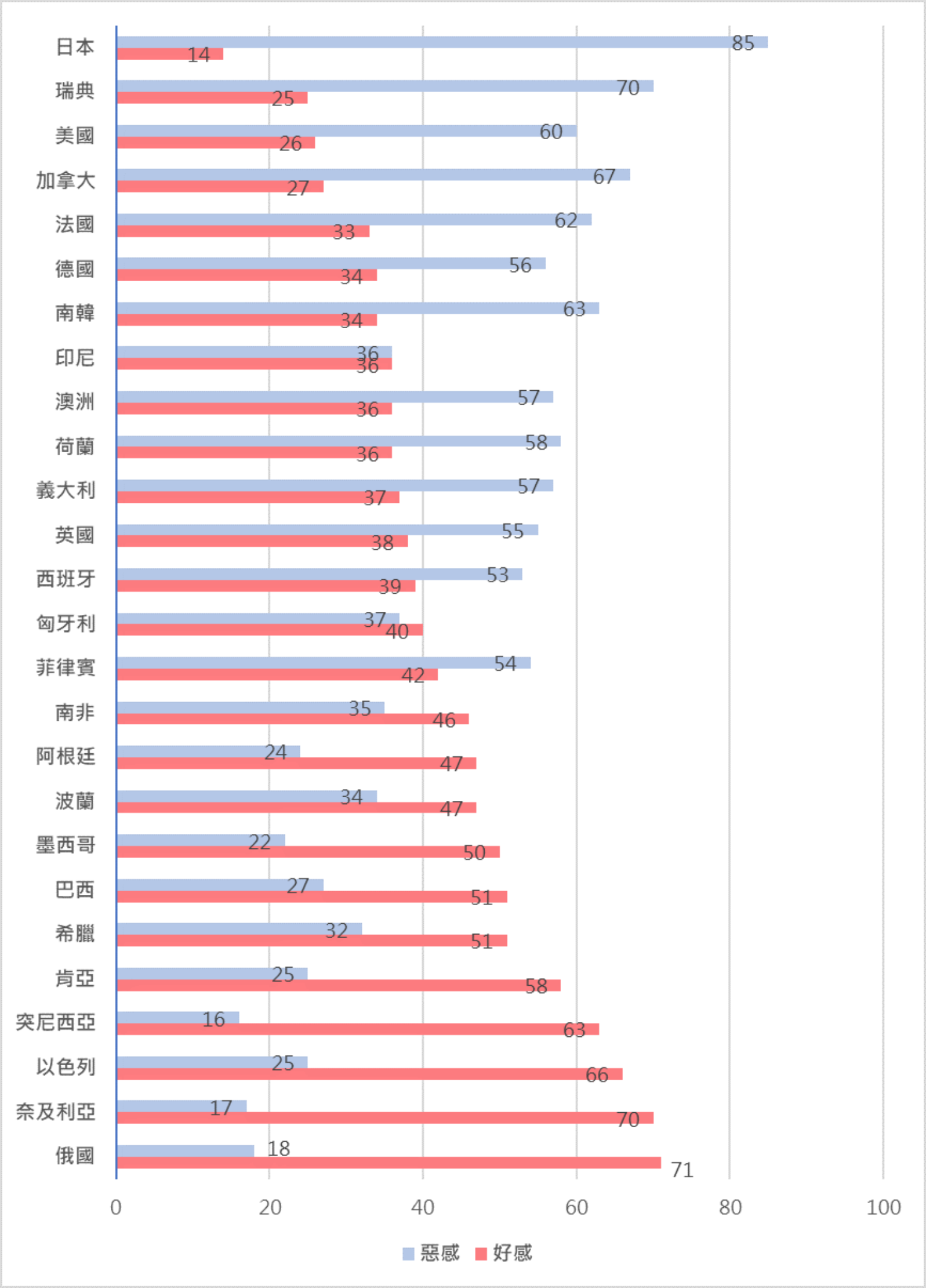 日本人對中國負面看法高達85%居各國之冠
