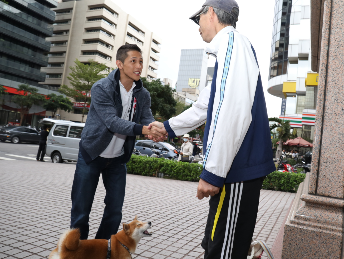 吳怡農向附近居民握手問早,以展示誠懇與參選該區立委的決心。(攝影/趙世勳)