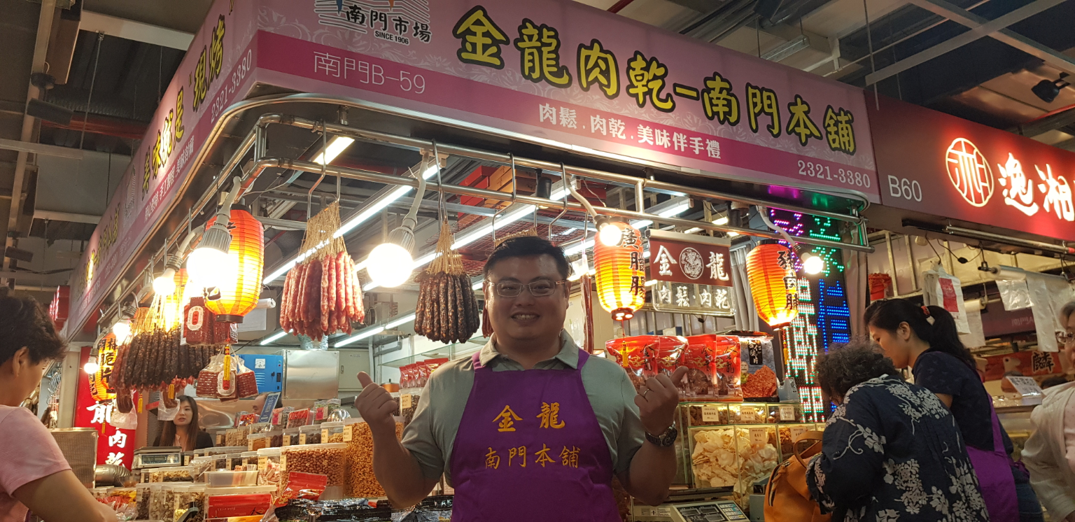 金龍肉乾是40-50年老店,主要是肉類製品,肉鬆肉乾全是自製自銷並研發各種不同口味,傳統的原味蜜汁肉干,也研發蒜味、黑胡椒、泰式等。有嚼勁的超薄的肉紙,也有多種口味。還有來到中繼南門市場的新亮相的產品「金圓滿肉干」研發出特有的煙燻口味。