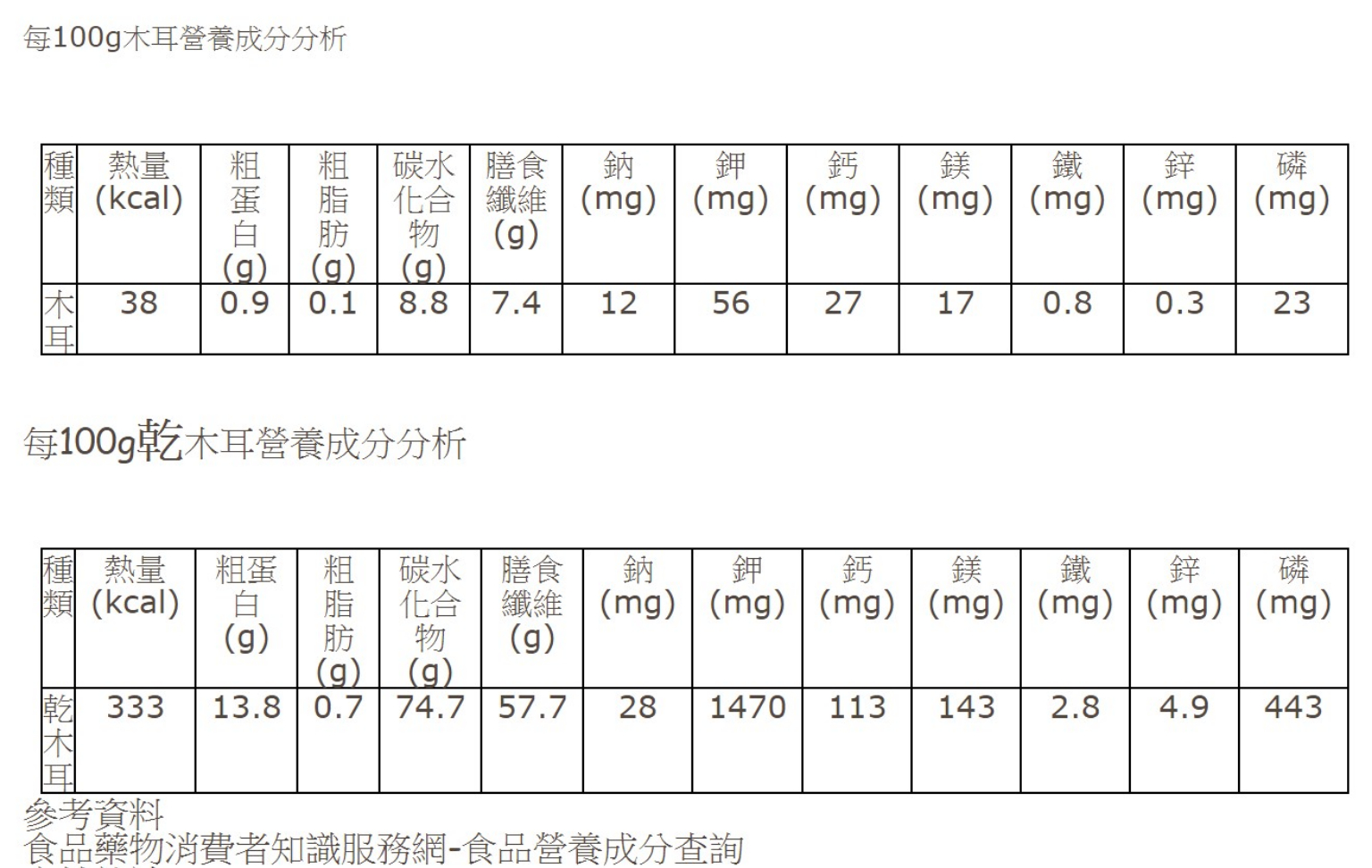木耳的營養成分。(圖片來源/鹿港基督教醫院提供)