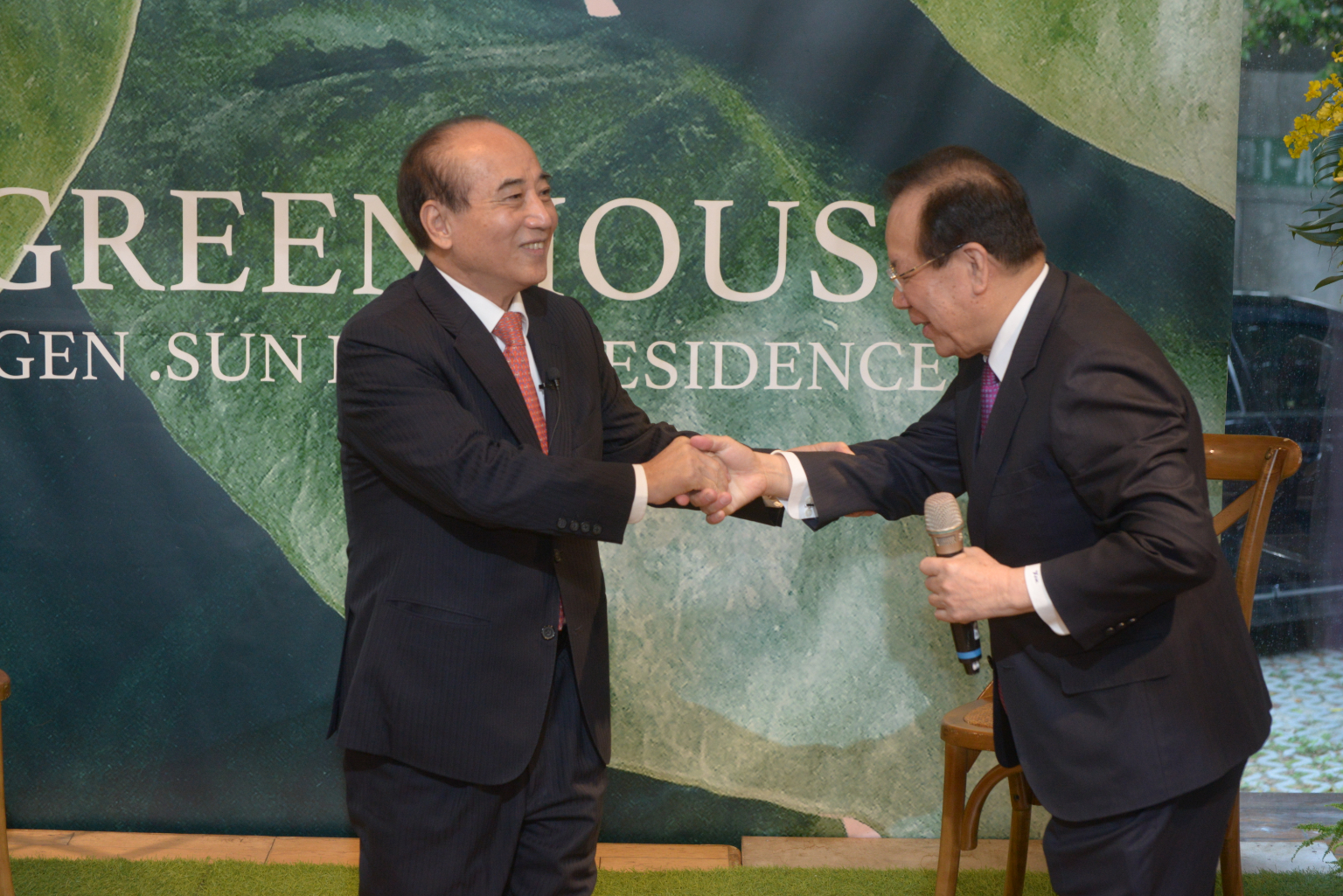 顏慶章(右)今日在台上還特別回憶王金平當年在南一中時期的照顧。(攝影/趙世勳)