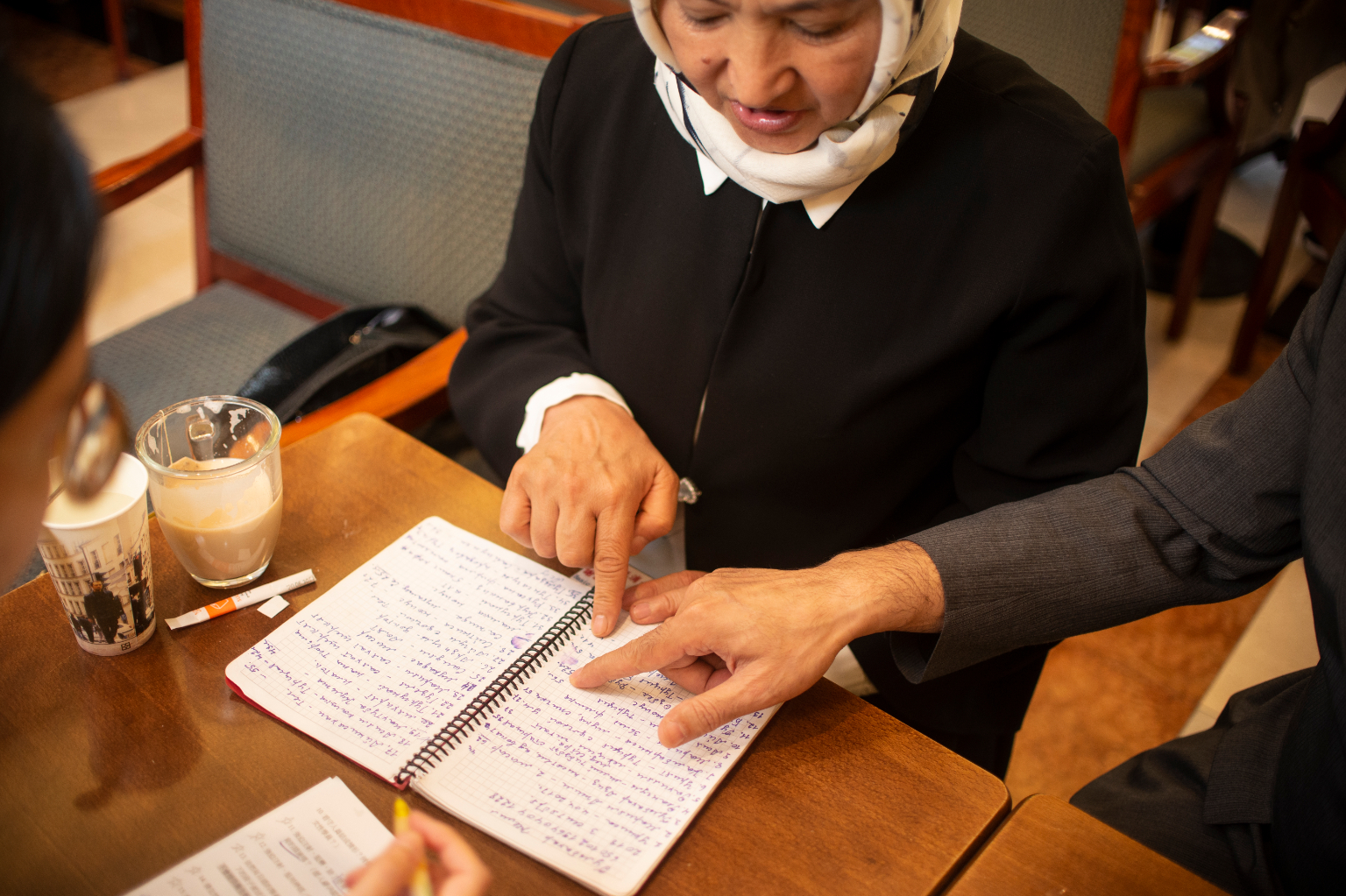 Gulbahar展示自己紀錄再教育營室友的筆記。(攝影/趙世勳)